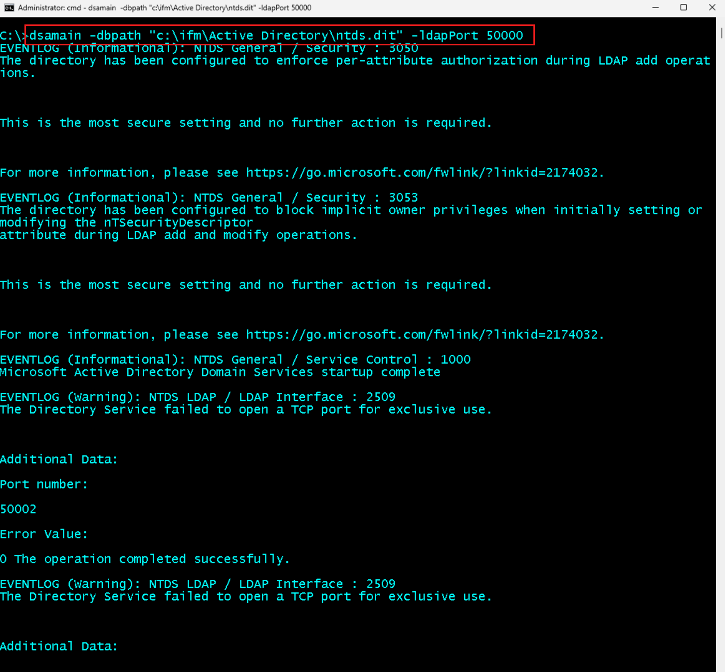 Командная строка для монтирования базы данных резервных копий Active Directory: