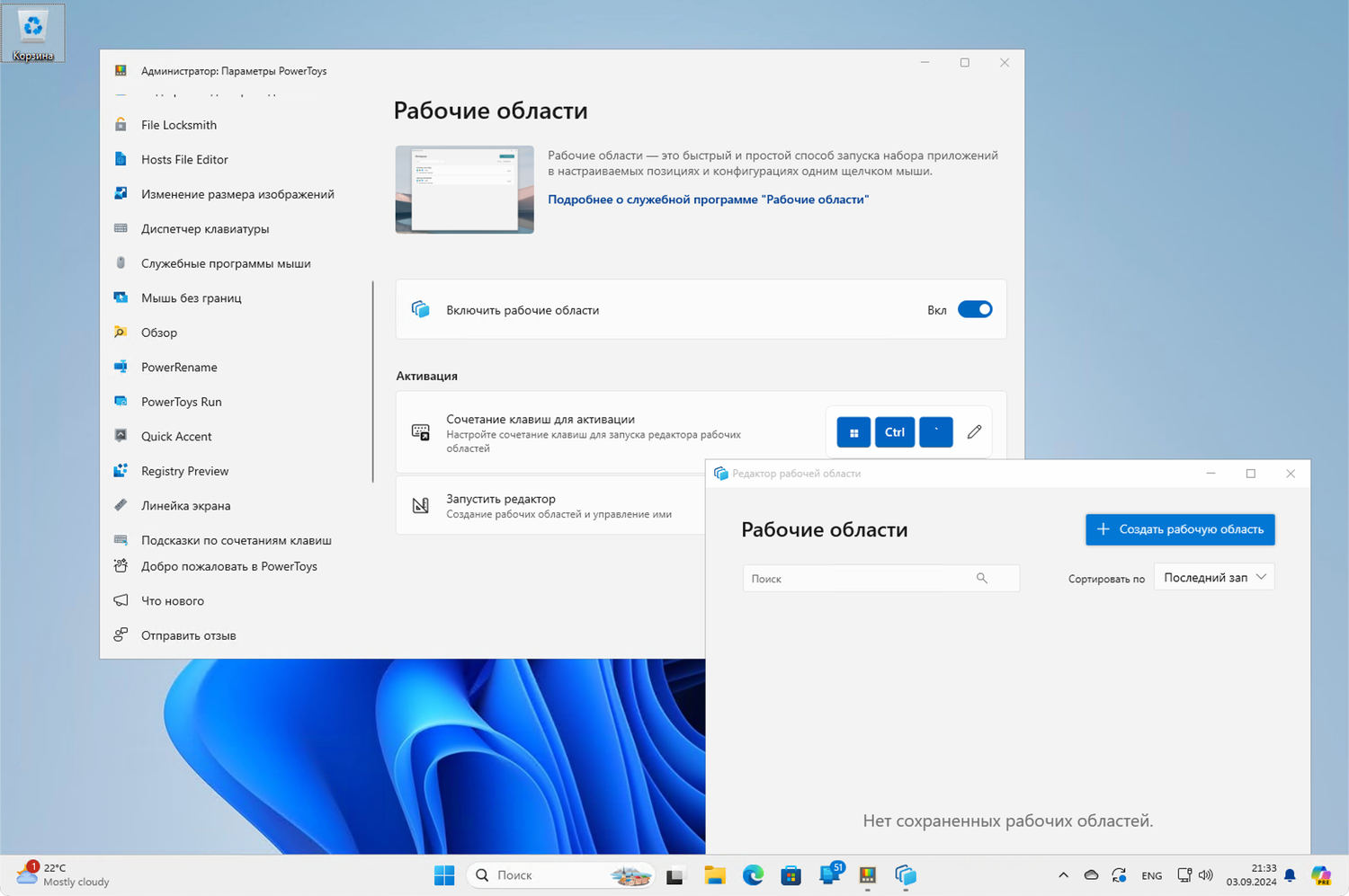 Новая утилита: PowerToys Workspaces