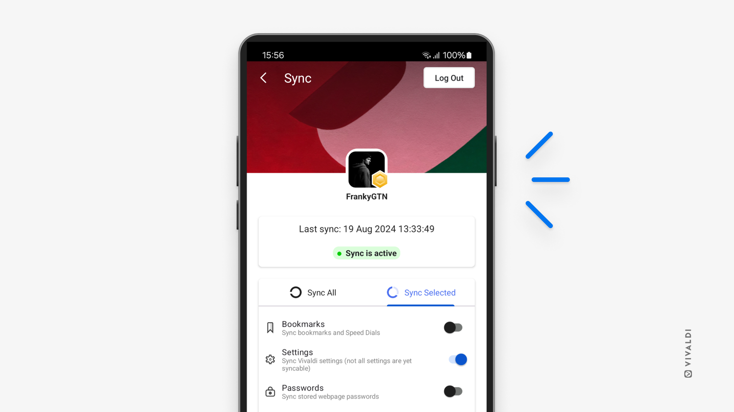Если вы делали донат в поддержку Vivaldi, то теперь значок поддерживающего проект отображается в настройках синхронизации. Это способ поблагодарить пользователей за вклад. Значок будет показываться его каждый раз, когда вы заходите в настройки синхронизации на своем мобильном устройстве.