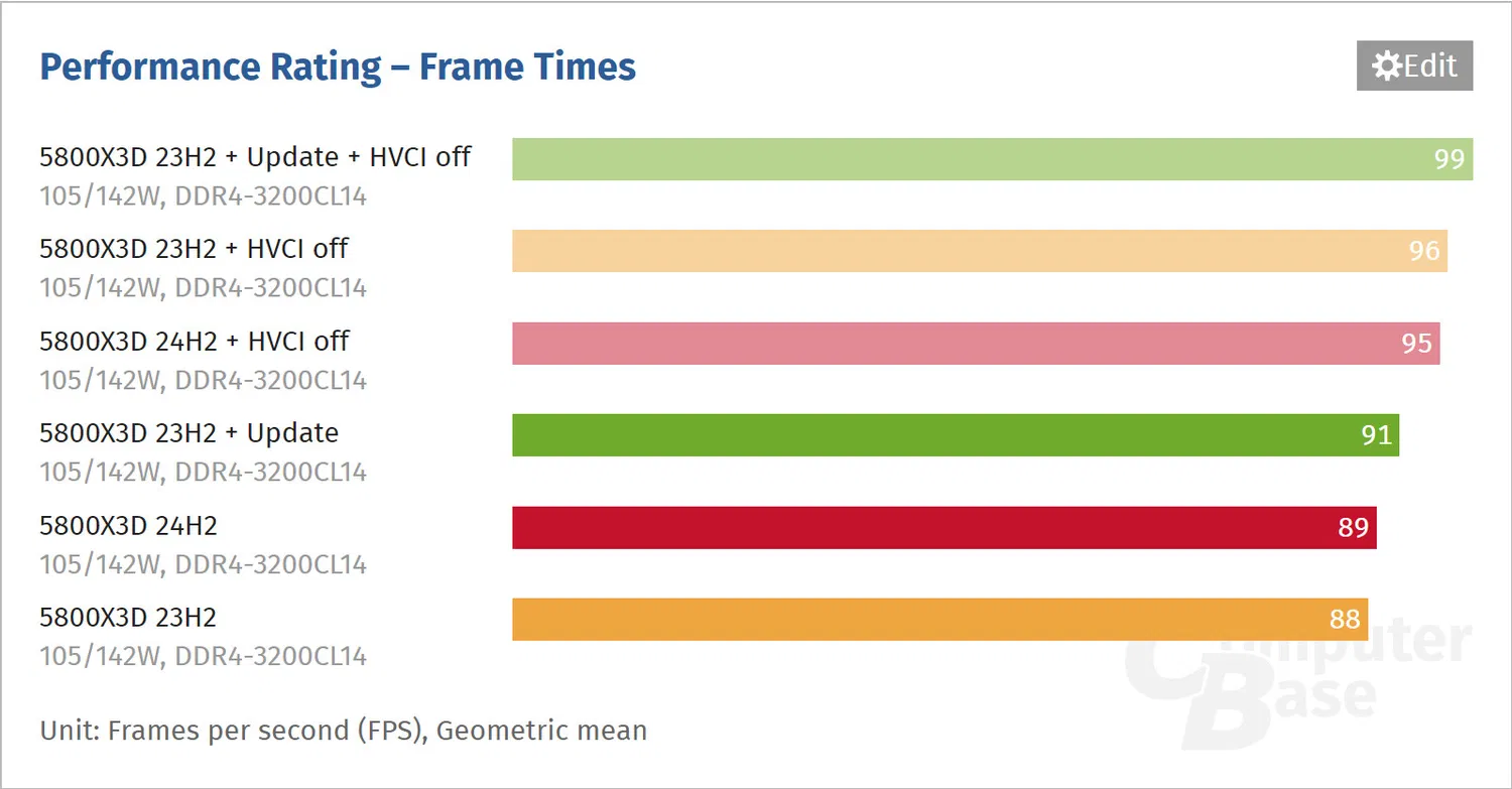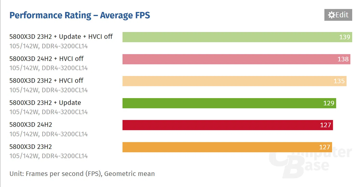 Немецкий новостной портал ComputerBase (CB) решил протестировать улучшения, которые приносит Windows 11, версия 24H2 для процессоров серии Ryzen 5000 (Zen 3) на устройстве с AMD Ryzen 5800X3D. Тест показал, что новая версия Windows определенно превосходит предыдущую по производительности. Однако VBS по-прежнему замедляет систему, как это было с момента выпуска Windows 11, версия 21H2.