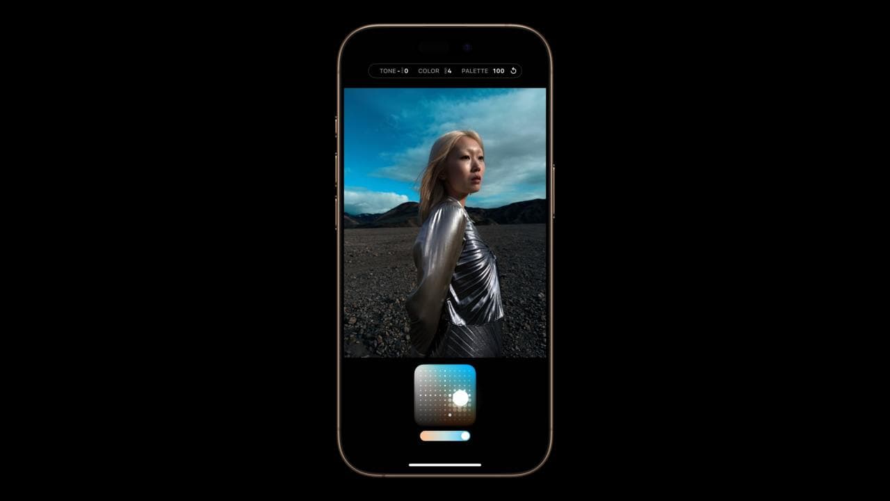 Кнопка управления камерой, выполненная из сапфирового стекла, теперь обеспечивает тактильную отдачу и используется исключительно для управления приложением камеры. Нажатие запускает камеру, повторное нажатие делает снимок, а удержание кнопки записывает видео. Кнопка поддерживает жесты: легкое нажатие открывает чистый превью кадра, а новое меню позволяет быстро управлять функциями камеры, такими как зум и переключение объективов. В будущем обновление добавит возможность фиксировать фокус и экспозицию при полунажатии.