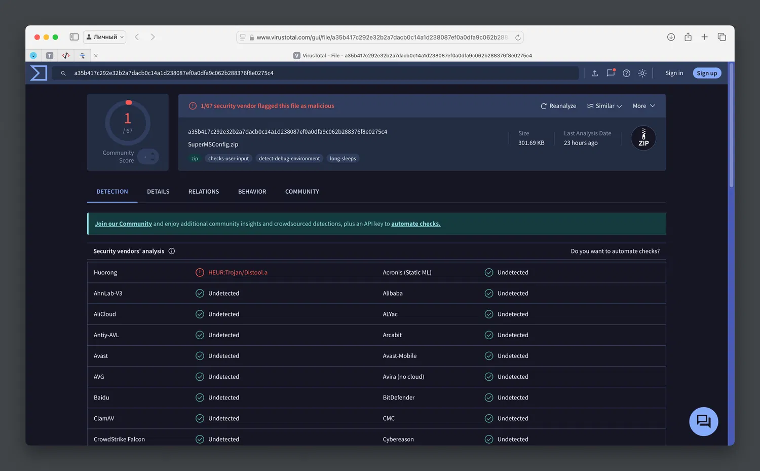Примечание: Windows SmartScreen может отобразить предупреждение о безопасности. Это связано с небольшим возрастом приложения — проверка на Virustotal показала только один ложный положительный результат.