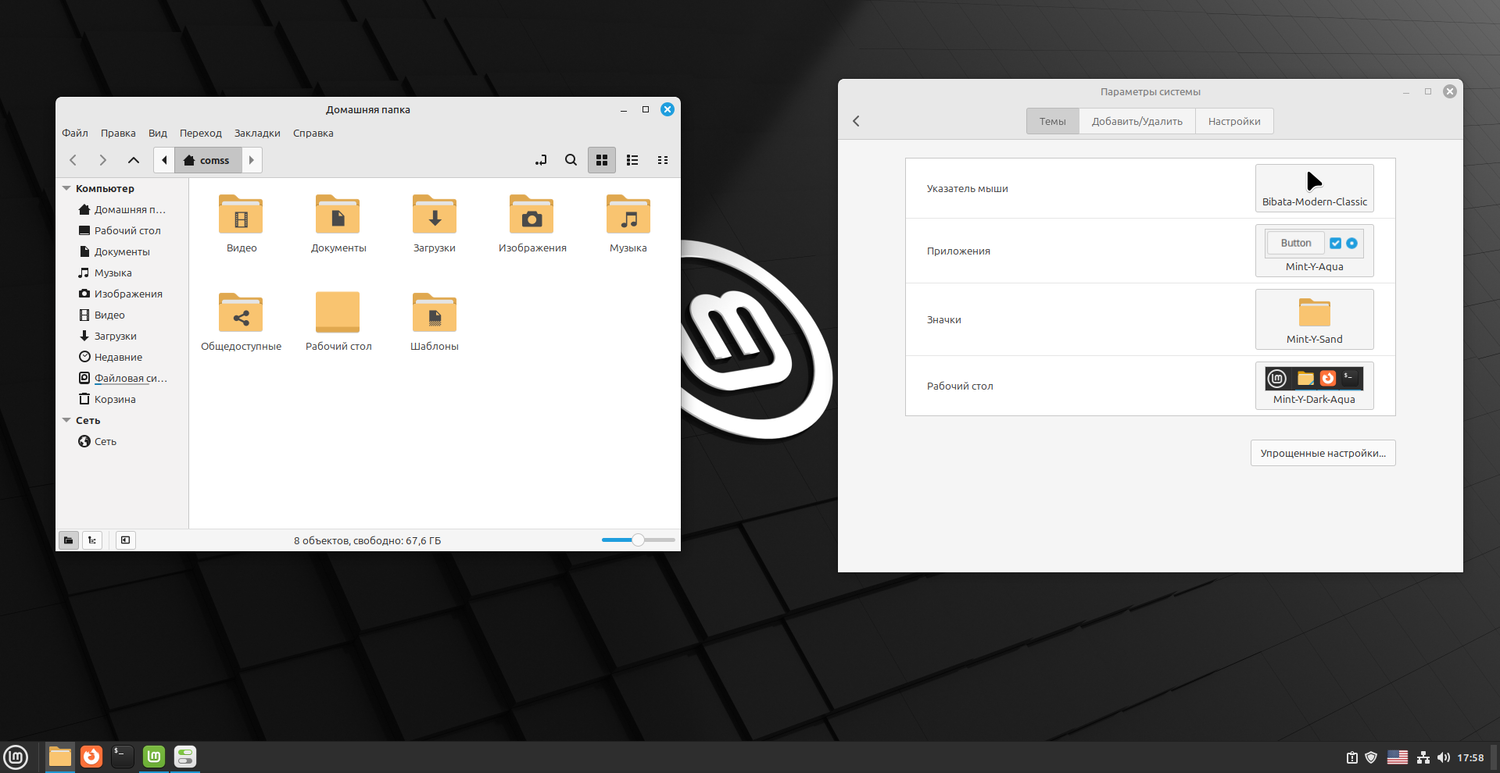В Linux Mint основной акцент делается на тему Mint-Y, которая придает интерфейсу современный и стильный вид. Стандартная же тема Cinnamon остается практически нетронутой и используется в основном для отладки.