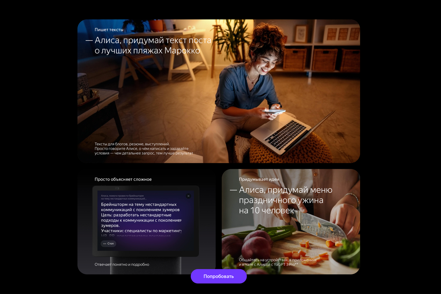 Основой для успеха «Алисы Про» стала нейросеть YandexGPT 3 Pro, которая позволяет пользователям эффективно работать с текстом, разрабатывать идеи и находить ответы на сложные вопросы. Модель поддерживает широкий спектр задач — от создания контента для блогов и социальных сетей до помощи в программировании и обучении. В умных колонках Яндекса Алиса помогает не только взрослым, но и детям, обучая их полезным привычкам через игровые сценарии.