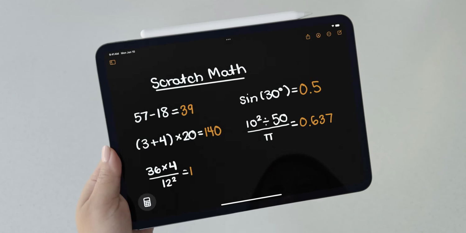 - Калькулятор: Впервые появился на iPad с такими функциями, как Math Notes — возможность решать математические выражения с помощью Apple Pencil или клавиатуры.
