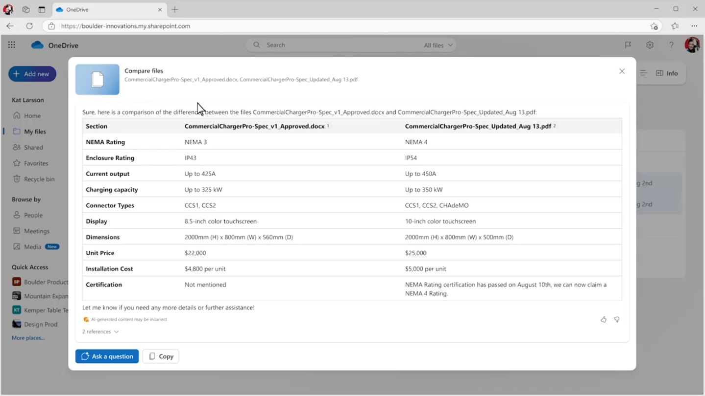 В конце сентября Microsoft также улучшит Copilot в Word, позволяя ссылаться на данные из писем и встреч, а также на данные из документов. Это облегчит добавление вложений из писем и ключевых моментов из встреч. В это же время Редмонд должен представить Copilot в OneDrive, что упростит резюмирование содержимого и сравнение до пяти файлов для выявления различий между ними.