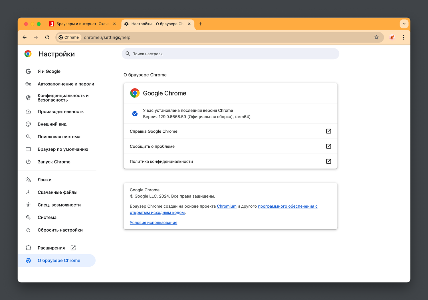 Чтобы проверить версию Google Chrome, перейдите в меню > Справка > О браузере Google Chrome или откройте страницу chrome://settings/help. Если обновление доступно, то браузер автоматически скачает и установит свежую версию. Для завершения установки обновления потребуется перезапуск браузера.
