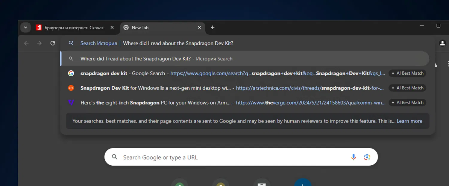 Одной из самых интересных ИИ-функций в настольной версии Google Chrome является возможность естественного поиска по истории просмотров. Рассмотрим, как включить эту функцию.