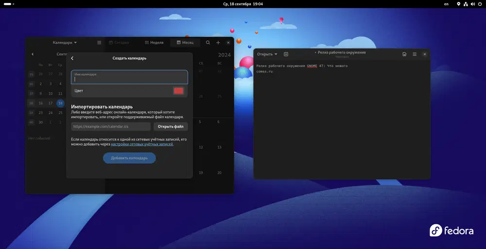 Календарь GNOME теперь поддерживает импорт файлов формата ICS методом перетаскивания, что упростит планирование и добавление мероприятий. Редактор текста GNOME Text Editor был улучшен с точки зрения проверки орфографии и функции печати, а также получил некоторые визуальные обновления.