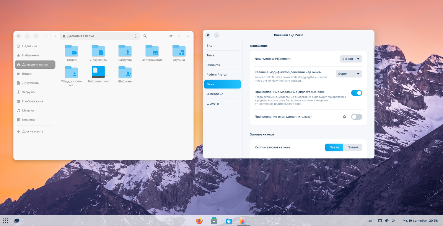 В Zorin Appearance появился новый раздел, позволяющий легко настраивать поведение окон. Вы можете управлять такими аспектами, как размещение окон, взаимодействие с заголовками и переключение между ними. Эти настройки сделают работу с приложениями более удобной и интуитивной.