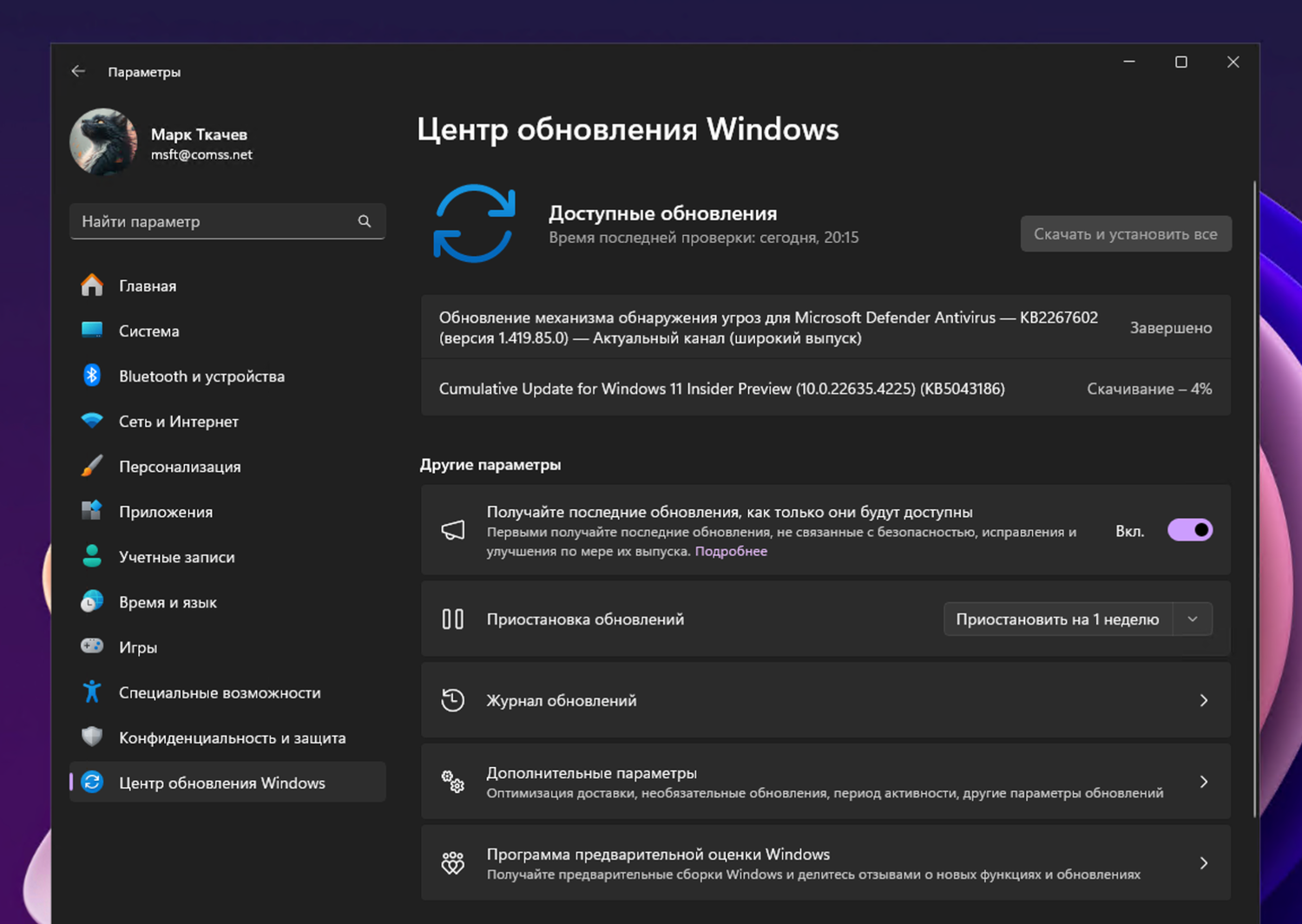 Примечание. Microsoft заблокировала установку обновлений для инсайдеров Windows 11 в России и Беларуси. Для установки Windows 11, Версия 23H2 (Сборка ОС 22635.4225) вы можете использовать наши DNS-серверы: Установка инсайдерских сборок Windows 11 с помощью Comss.one DNS.
