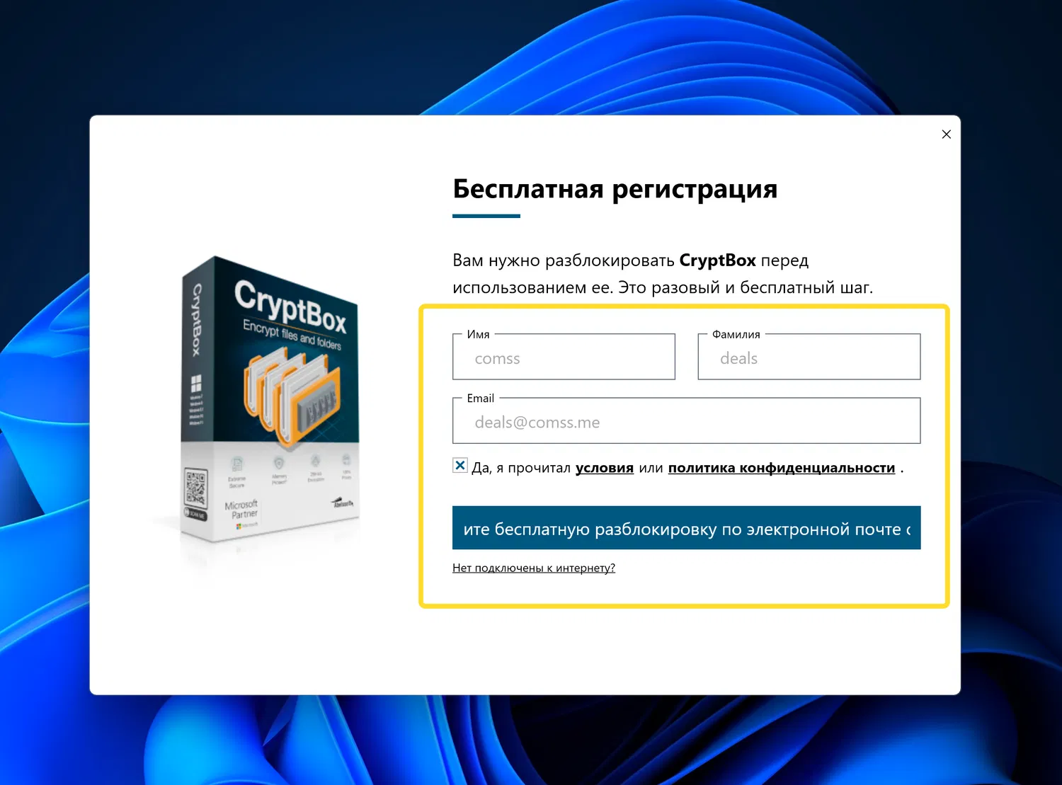 Для получения бесплатной лицензии Abelssoft CryptBox 2025 выполните следующее: