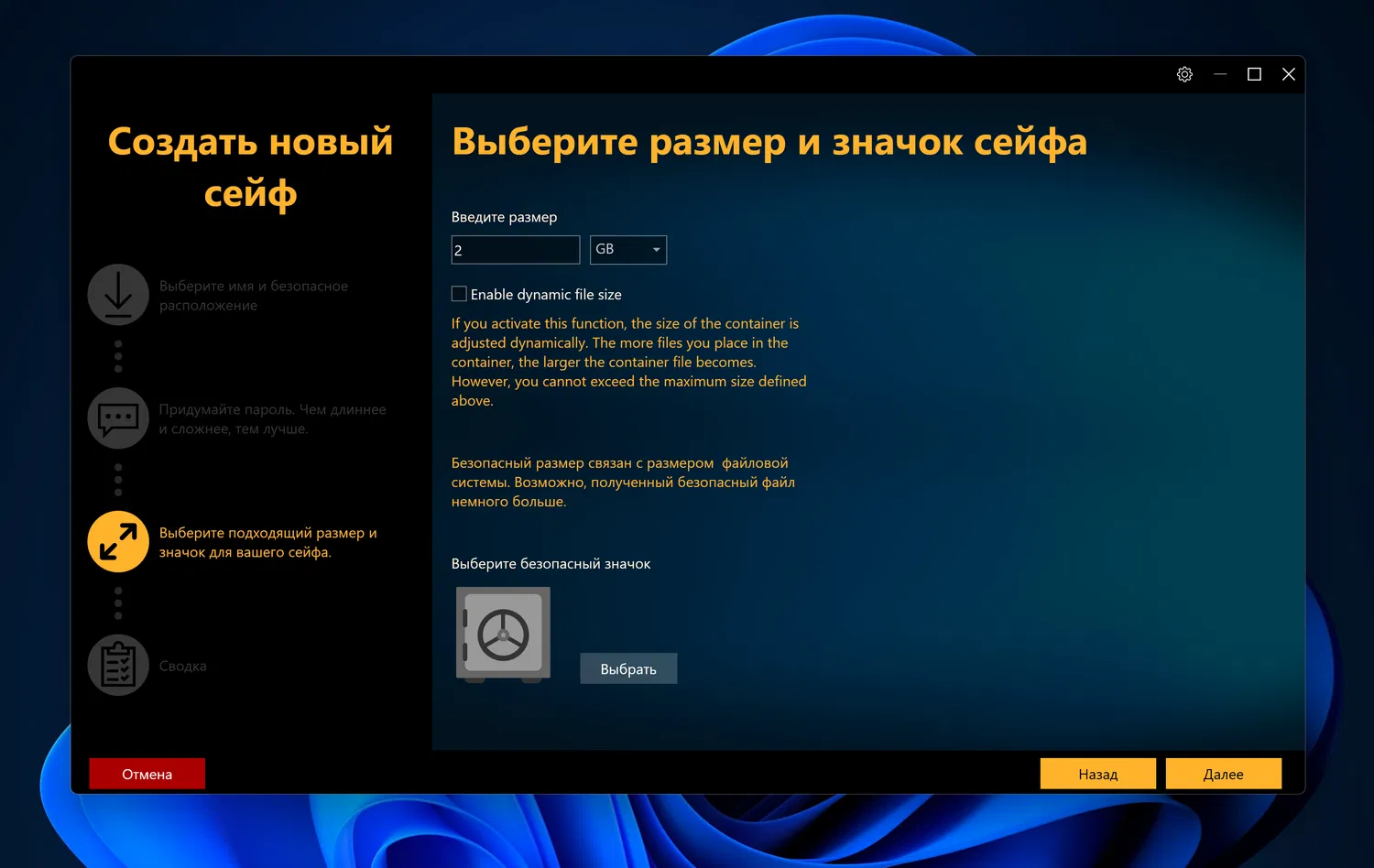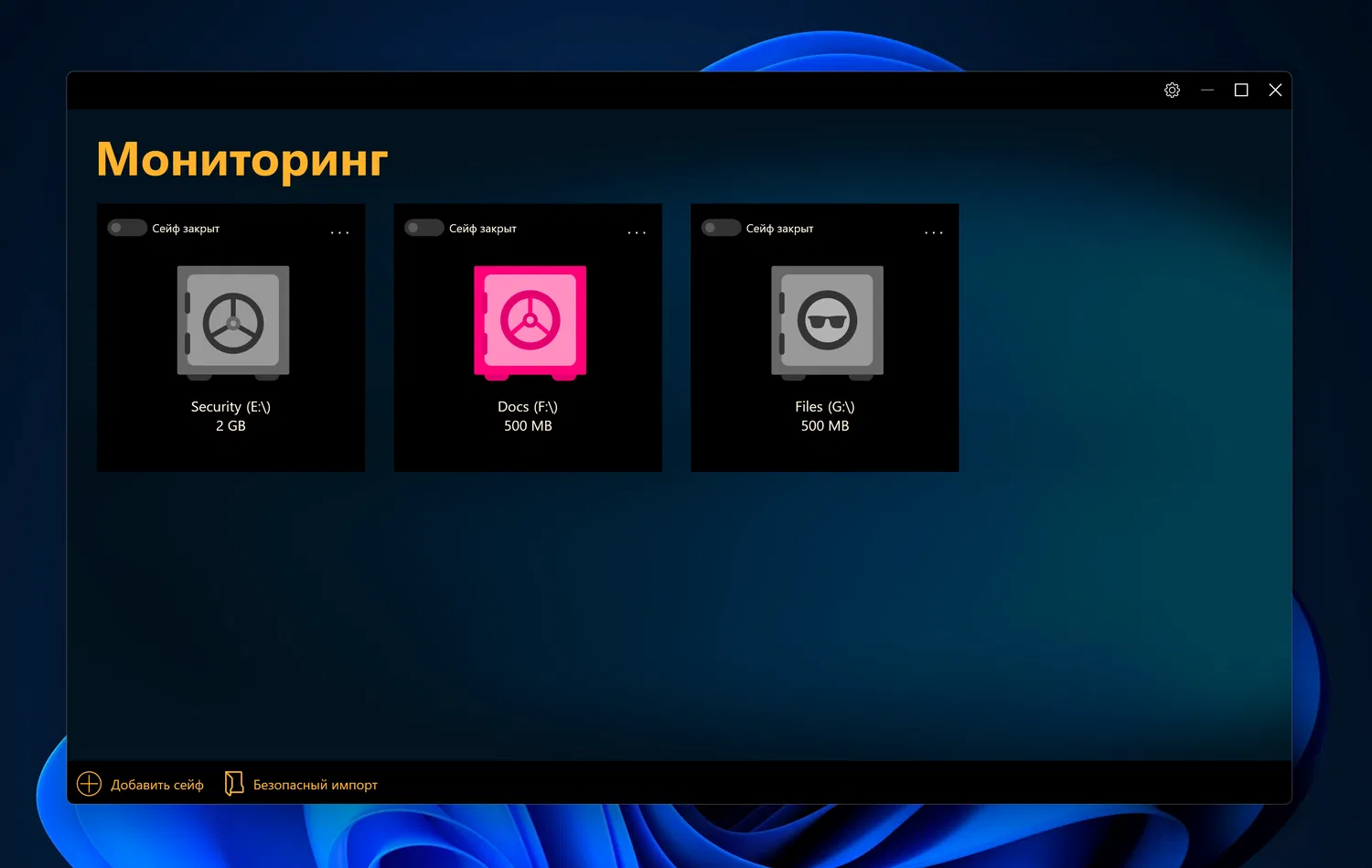 - Неограниченное количество сейфов: Можно создавать столько виртуальных сейфов, сколько вам необходимо, и все данные в них будут автоматически зашифрованы.