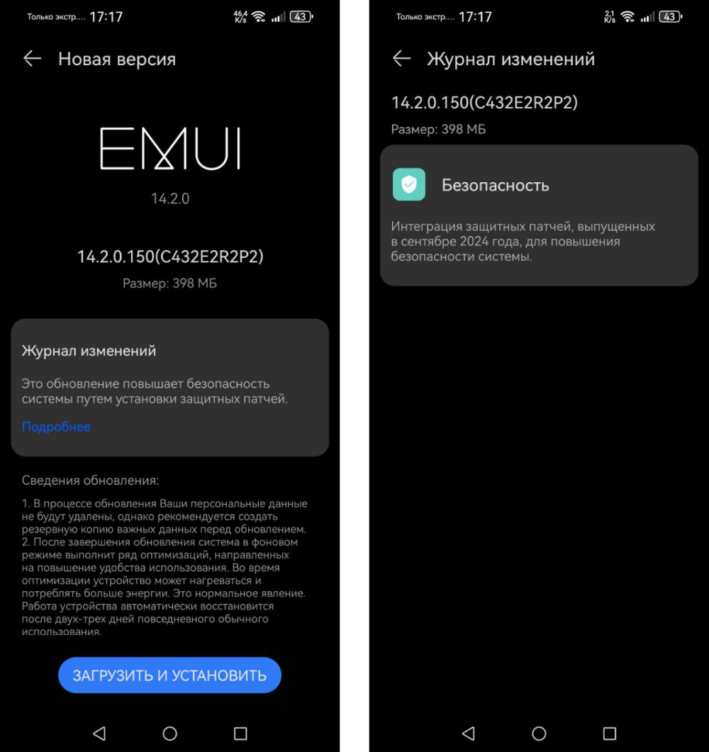 Сентябрьское обновление EMUI 2024 получило номер версии 14.2.0.150 и включает улучшения безопасности для флагманских устройств Huawei. Размер пакета (~ 398 МБ) может варьироваться в зависимости от региона и модели устройства, но основная цель обновления — улучшение производительности и повышение уровня безопасности системы.