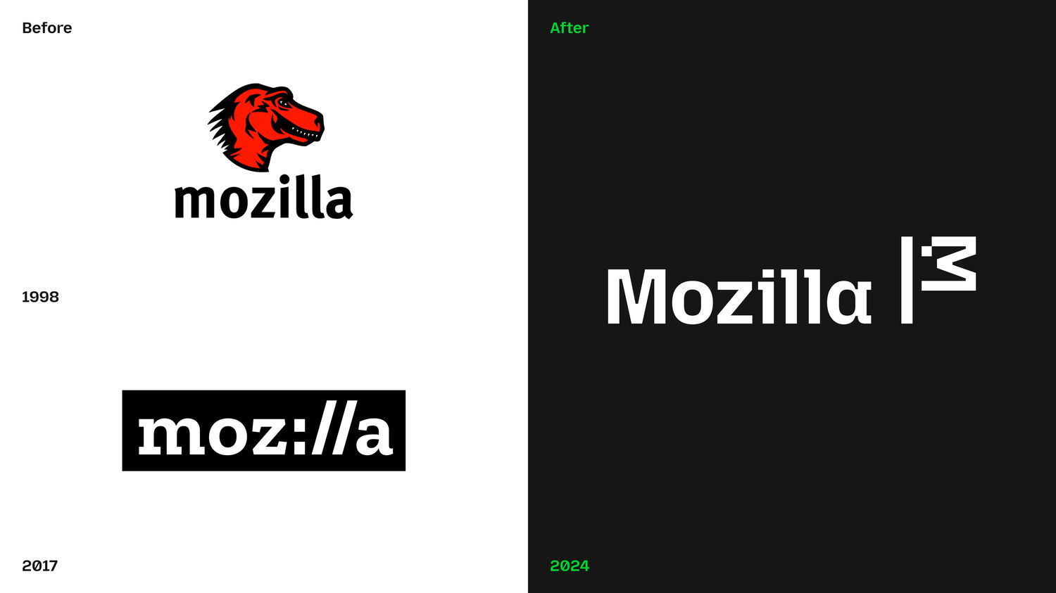 Mozilla полностью переработала свой фирменный стиль, чтобы отдать дань своим корням в Netscape и сильнее отличаться от бренда Firefox. Самое заметное изменение связано с логотипом компании: прежняя надпись «Moz://a» была обновлена, и теперь Mozilla пишется полностью, с использованием нового шрифта и флага в форме буквы «M».`