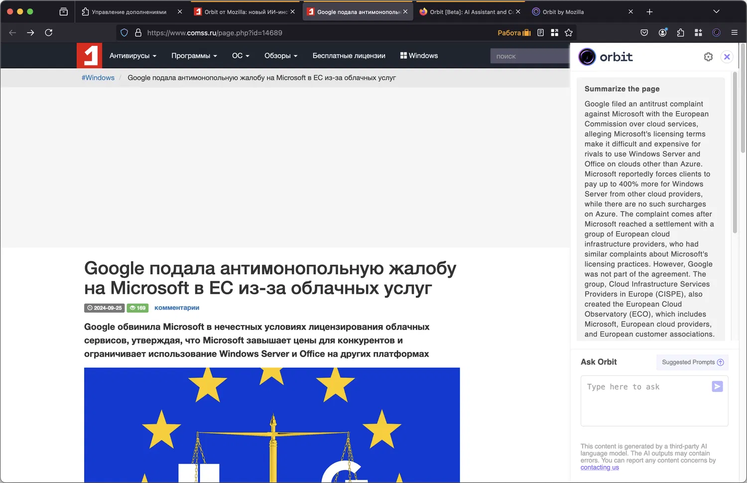 Orbit уже доступен для скачивания в виде дополнения для Firefox. Mozilla призывает пользователей опробовать новый инструмент и поделиться своим мнением, чтобы сделать продукт еще лучше. Этот ИИ-инструмент создан для того, чтобы сделать работу с информацией более быстрой и эффективной, оставаясь при этом простым и безопасным в использовании.