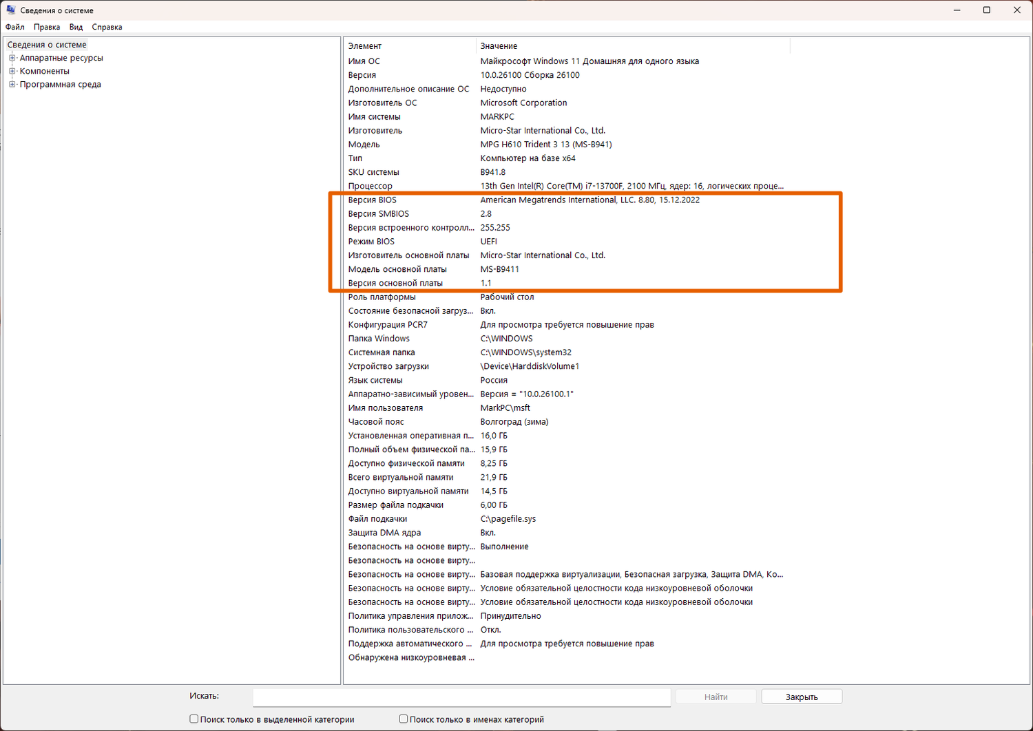 Пользователи Windows могут открыть Сведения о системе, чтобы узнать данные о материнской плате. Откройте меню «Пуск», введите «Сведения о системе» и нажмите клавишу Enter, чтобы открыть инструмент.