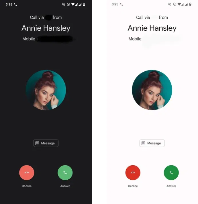Главное изменение касается способа ответа на звонок. Вместо привычного перетаскиваемого значка, новый дизайн предлагает отдельные кнопки "Ответить" и "Отклонить". Зеленая кнопка "Ответить" расположена справа, под опцией быстрого ответа сообщением, а красная кнопка "Отклонить" - слева. Такой подход напоминает интерфейс iPhone и некоторых других производителей Android-смартфонов, например, Samsung.