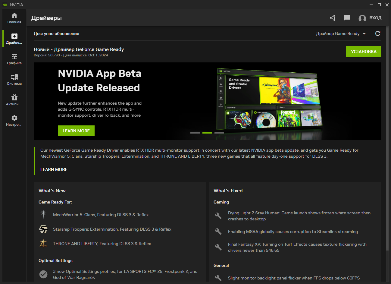 «Приложение NVIDIA», уже доступное в режиме бета-тестирования, предлагает более широкий функционал и объединяет в себе множество возможностей, ранее распределённых между GeForce Experience и панелью управления NVIDIA Control Panel. Приложение создаётся как универсальное решение для управления графическими настройками и обновлениями, предлагая простой и интуитивный интерфейс.