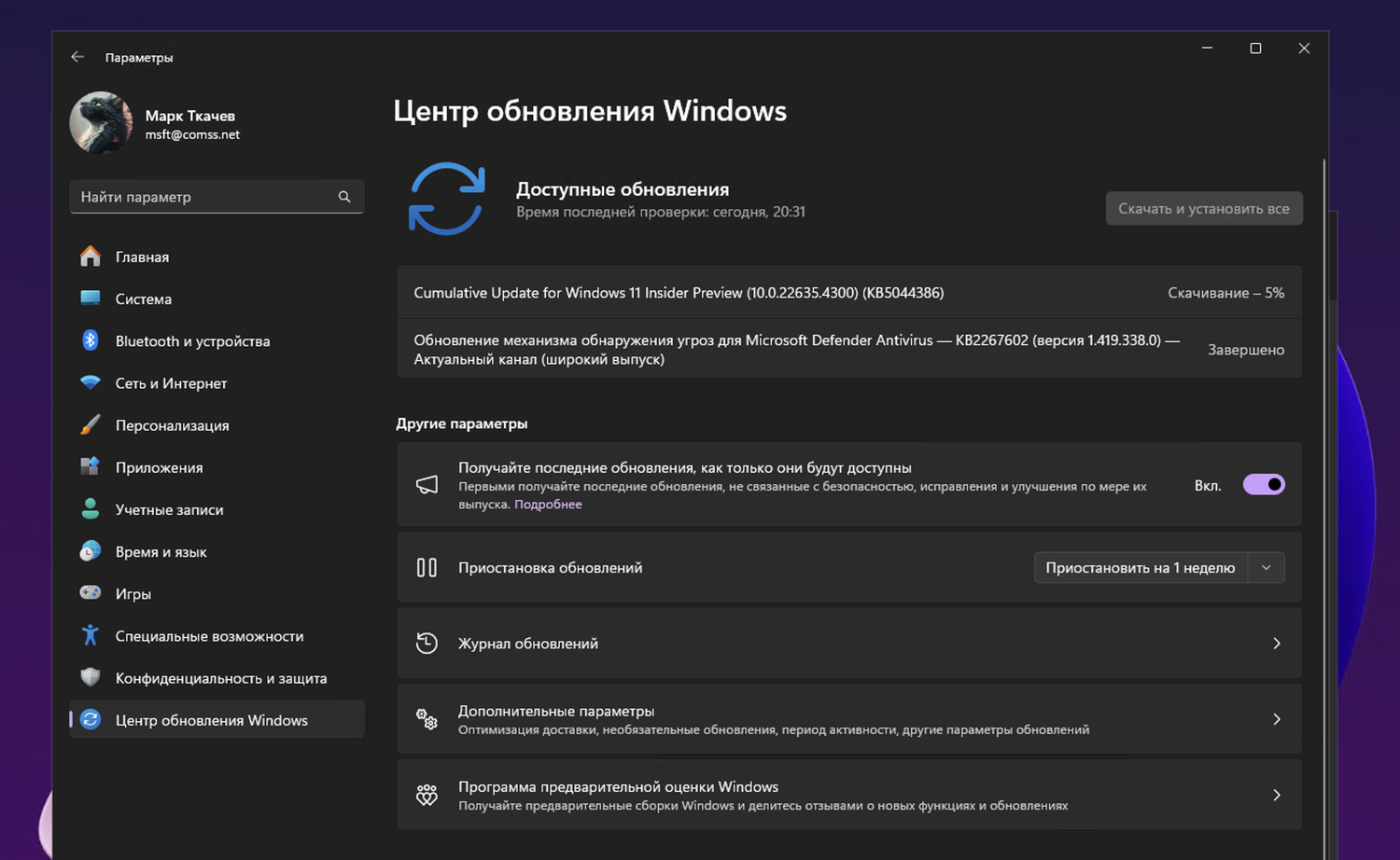 Примечание. Microsoft заблокировала установку обновлений для инсайдеров Windows 11 в России и Беларуси. Для установки Windows 11, Версия 23H2 (Сборка ОС 22635.4300) вы можете использовать наши DNS-серверы: Установка инсайдерских сборок Windows 11 с помощью Comss.one DNS.