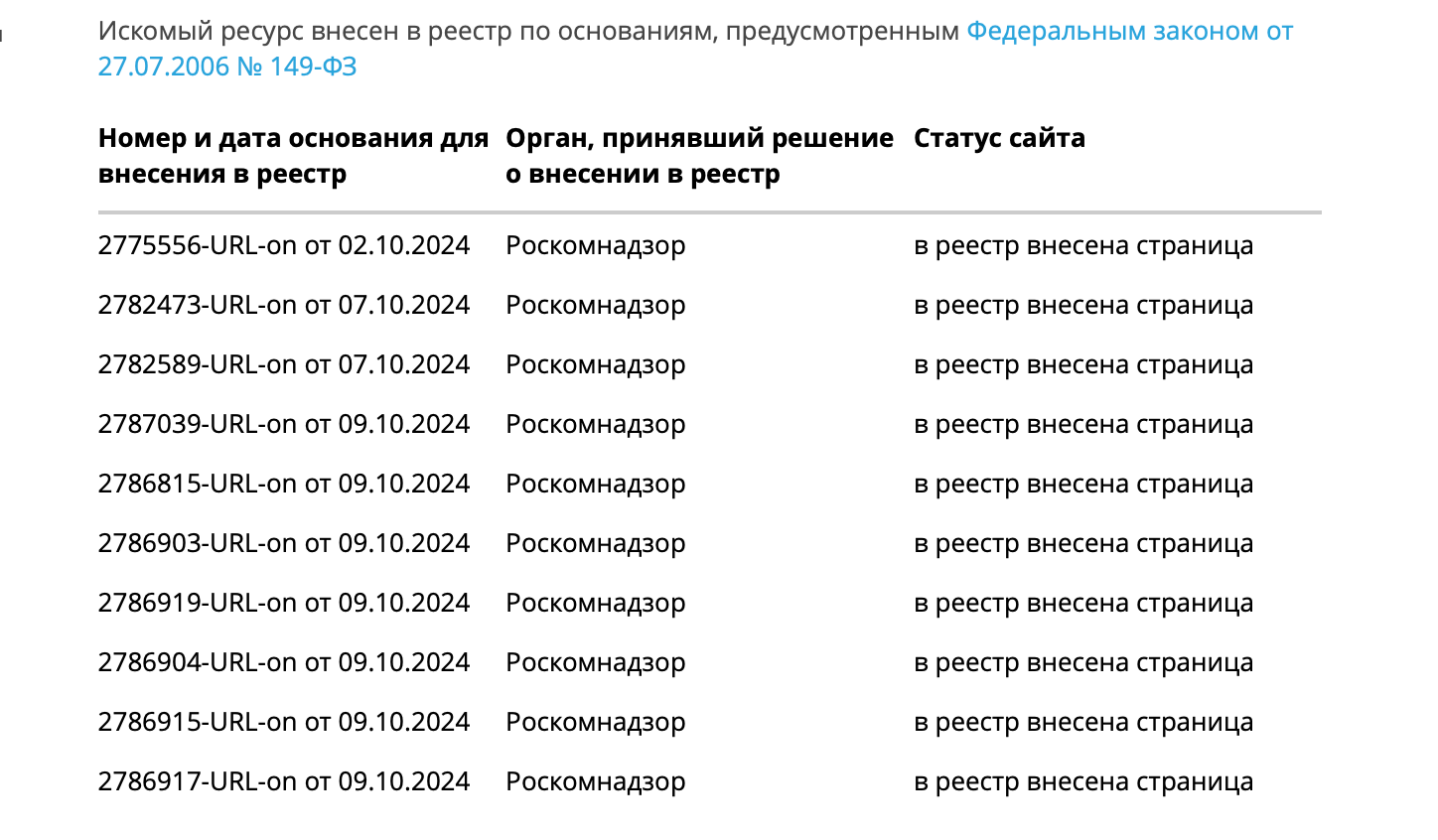 Вечером 8 октября стало известно, что три страницы сайта steamcommunity.com были внесены в реестр запрещённых ресурсов на основании закона «Об информации, информационных технологиях и защите информации» (149-ФЗ). Первая страница попала под блокировку 2 октября, две другие — 7 октября. Однако точные причины запрета не раскрыты.