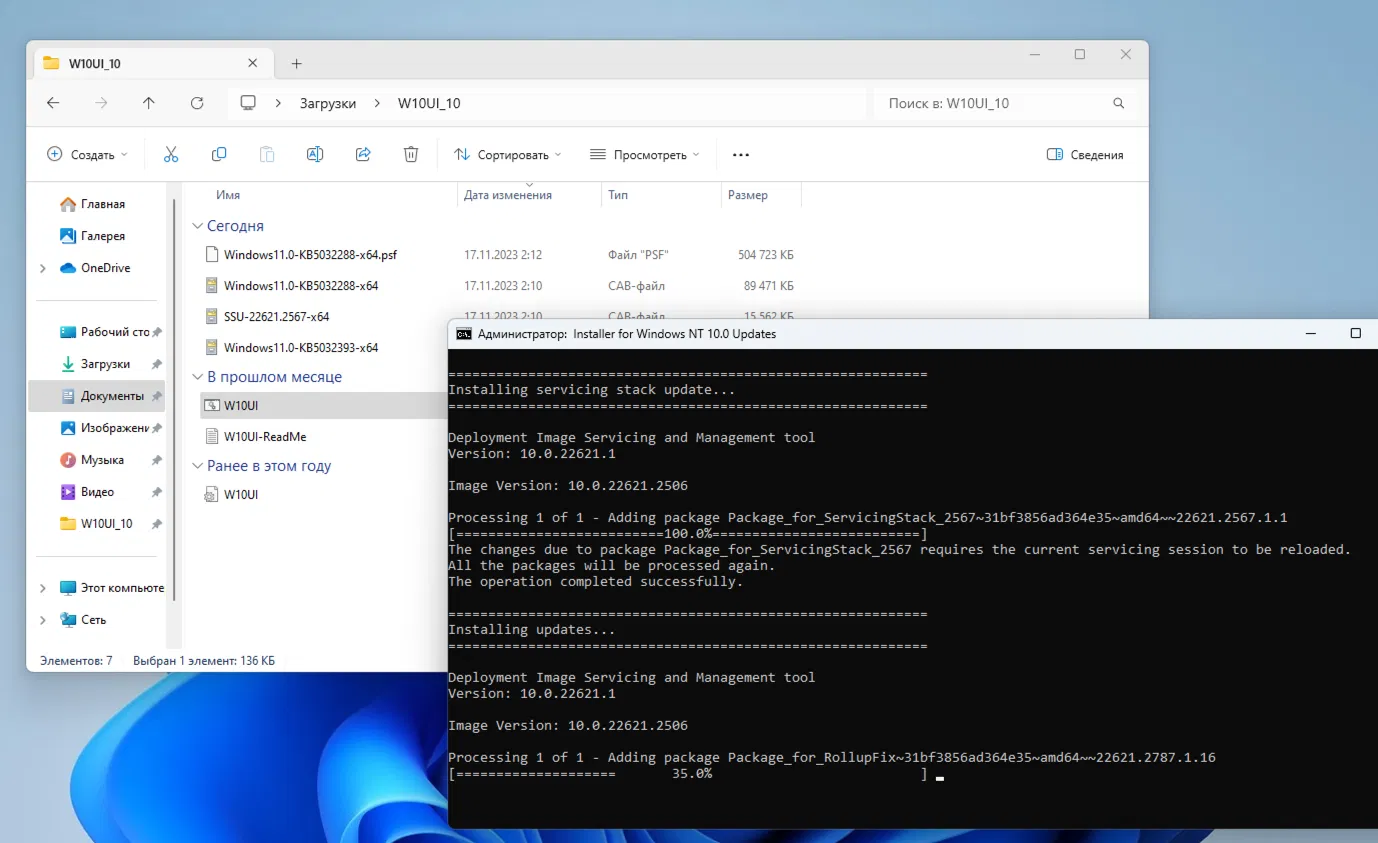 - Скачайте файл обновления Servicing Stack 10.0.22621.4365 – SSU 22621.4365 (.CAB) и два файла обновления KB5044373 (.CAB и .PSF) для выбранной платформы (x64 или ARM64) и поместите в папку W10UI_10.47.