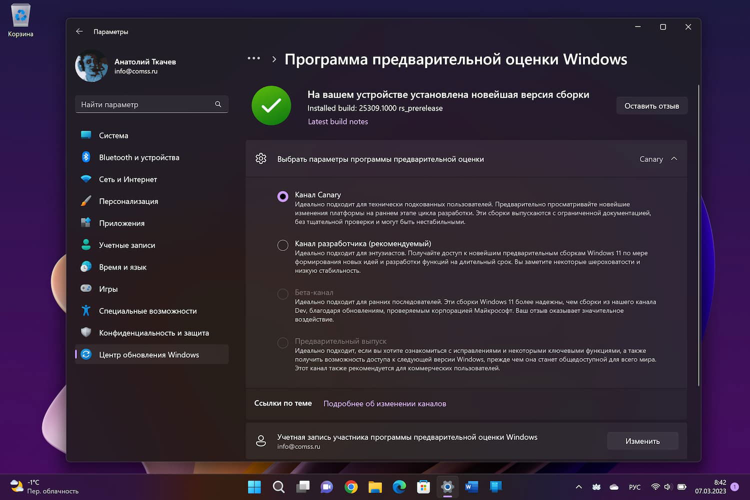 Примечание. Microsoft заблокировала установку обновлений для инсайдеров Windows 11 в России и Беларуси. Чтобы принять участие в тестировании, вы можете использовать наши DNS-серверы: Установка инсайдерских сборок Windows 11 с помощью Comss.one DNS.