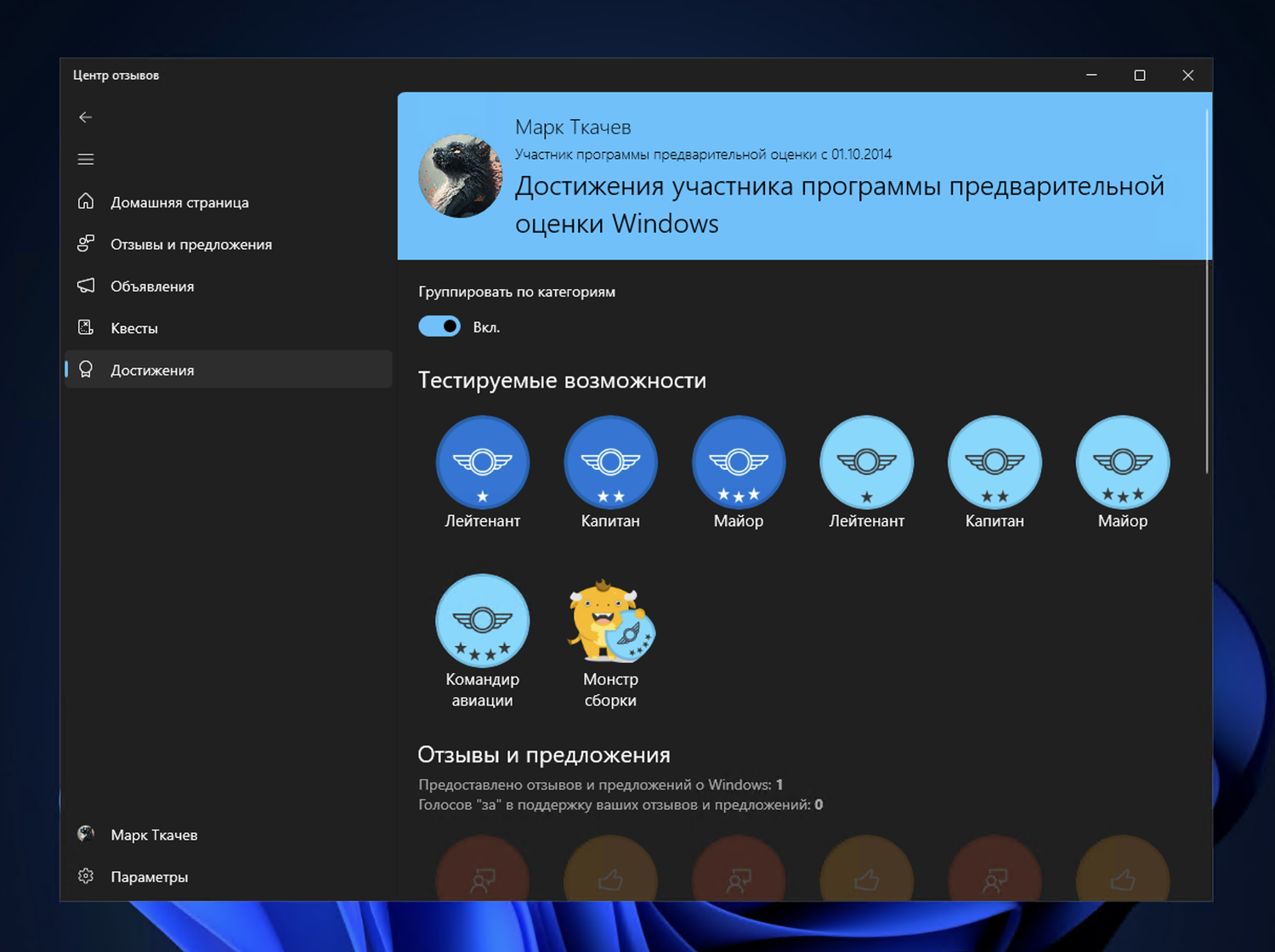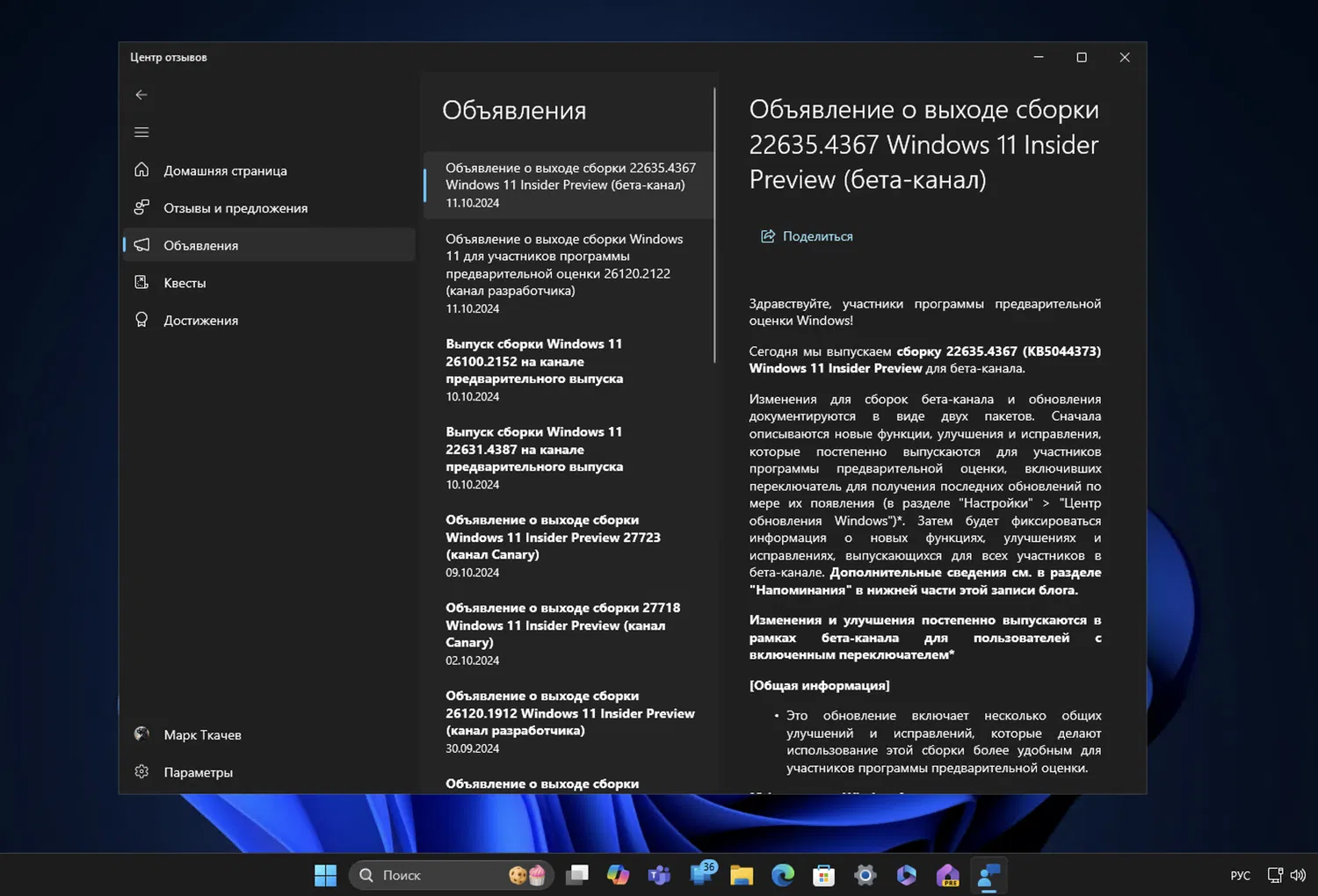 К тому же, не у каждого пользователя Windows есть учетная запись в X (бывший Twitter), но в каждой копии Windows есть приложение «Центр отзывов». Почему бы не использовать его для дополнительной коммуникации с инсайдерами? Например, вы записываете свое устройство в программу Insider и соглашаетесь, что Microsoft будет отправлять уведомления о новых сборках, обновлениях списков изменений, багах и др.