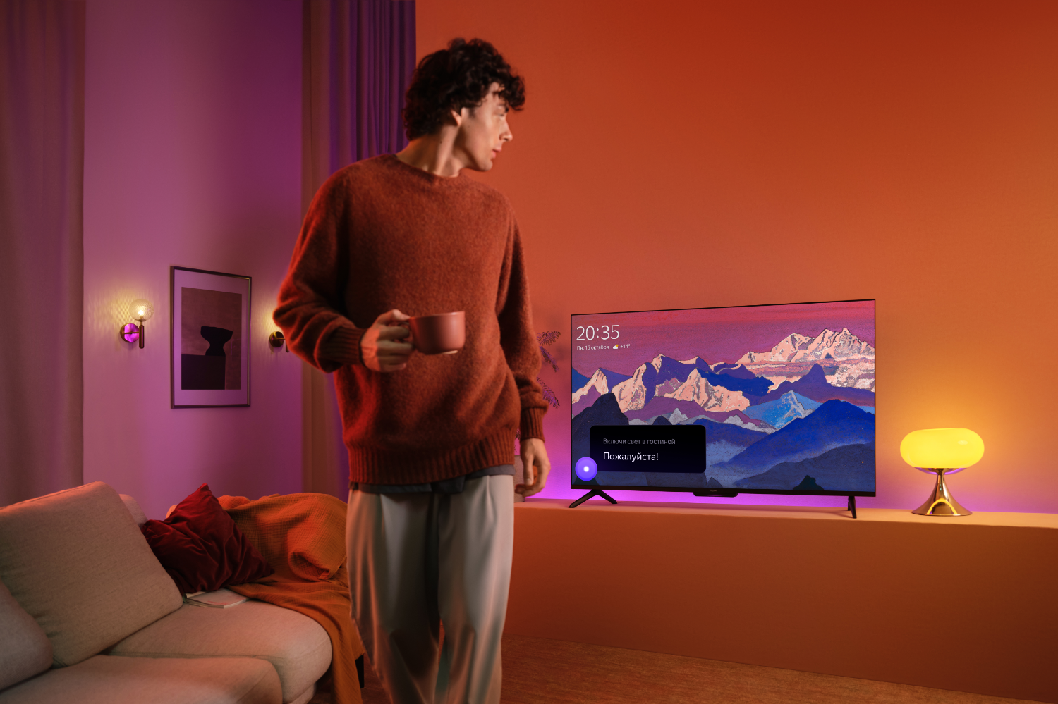 Телевизор оснащен микрофонами Farfield для работы с Алисой и двумя широкополосными динамиками, мощность которых варьируется от 20 до 30 Вт в зависимости от размера модели. Акустика настроена командой специалистов, создающих звук для умных колонок Яндекса, что гарантирует качественное звучание в любых условиях.