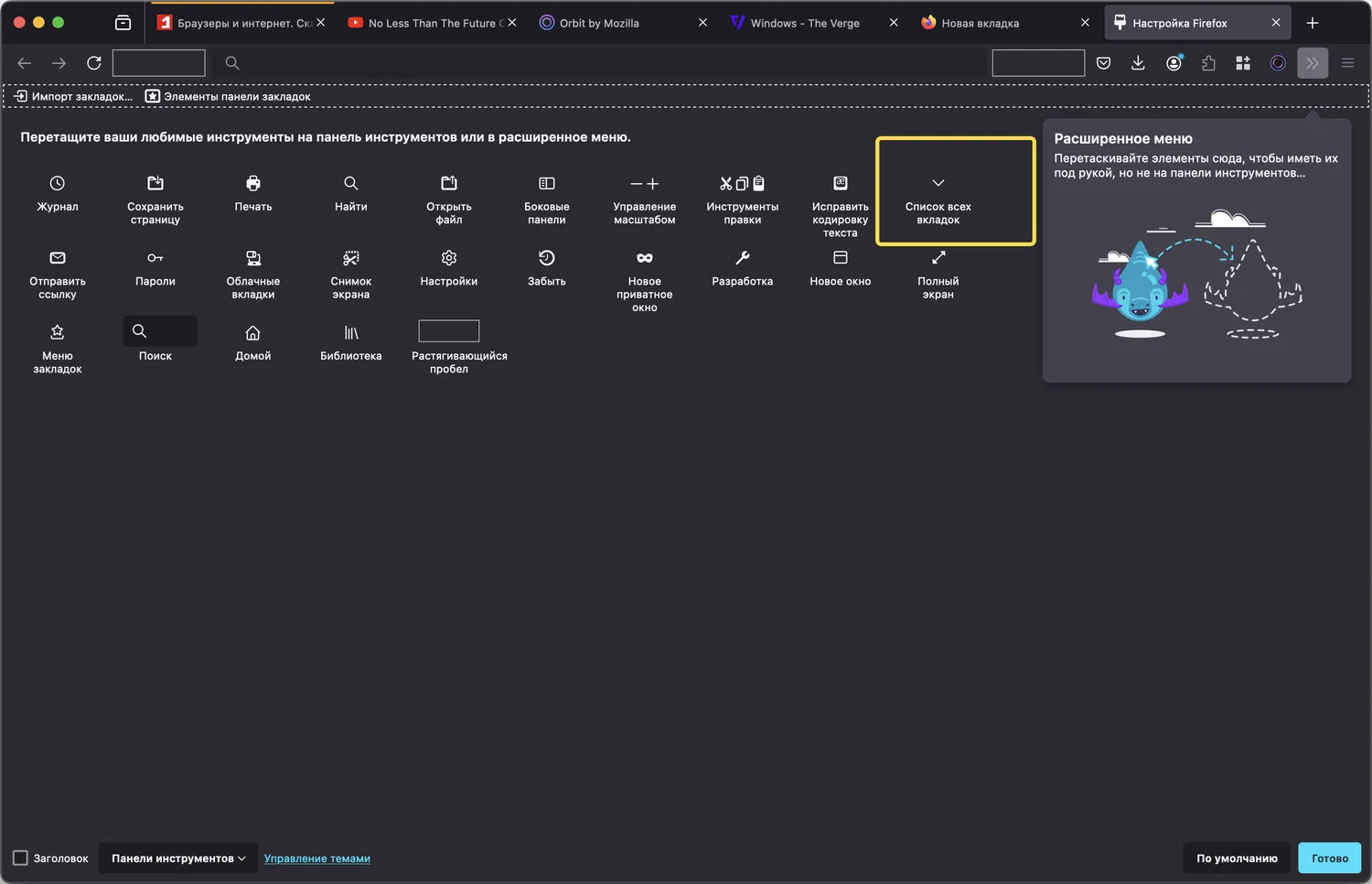 Mozilla дает возможность пользователям удалить кнопку «Список всех вкладок»