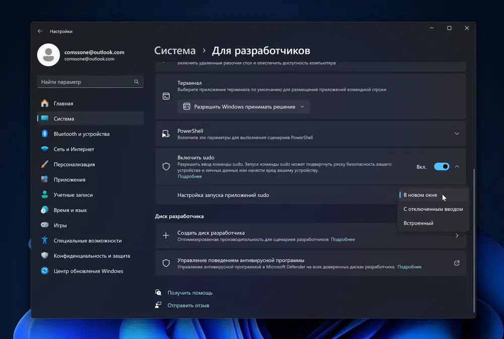 Хотя sudo доступен в Windows 11, версия 24H2, по умолчанию он отключен, поэтому сначала нужно его настроить: