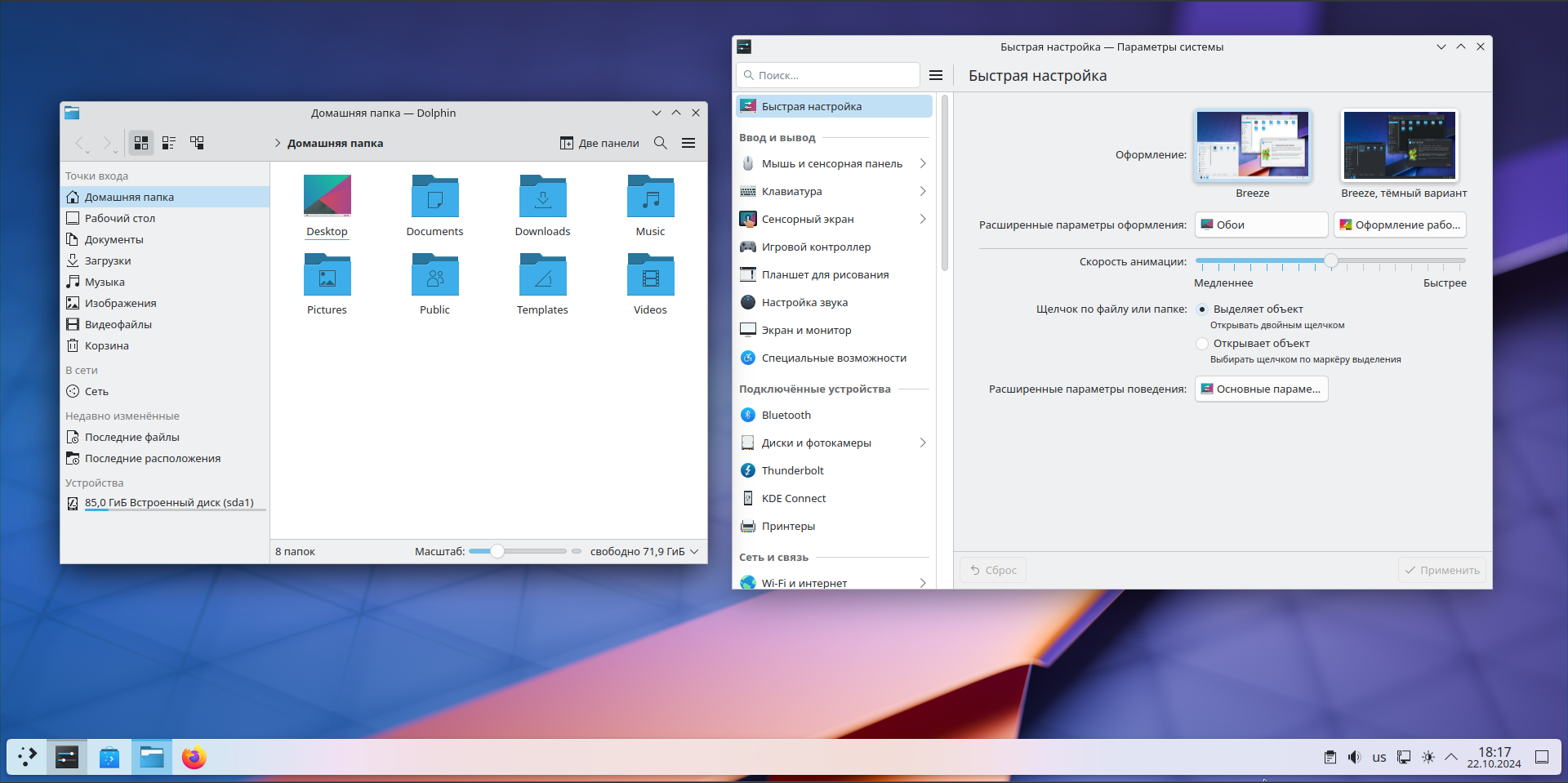Версия KDE Plasma 6.2.2 включает оптимизации для систем с несколькими видеокартами, что снижает риск сбоев при их одновременном использовании. Также были улучшены параметры управления гаммой и цветовыми преобразованиями, что повышает качество визуального восприятия.