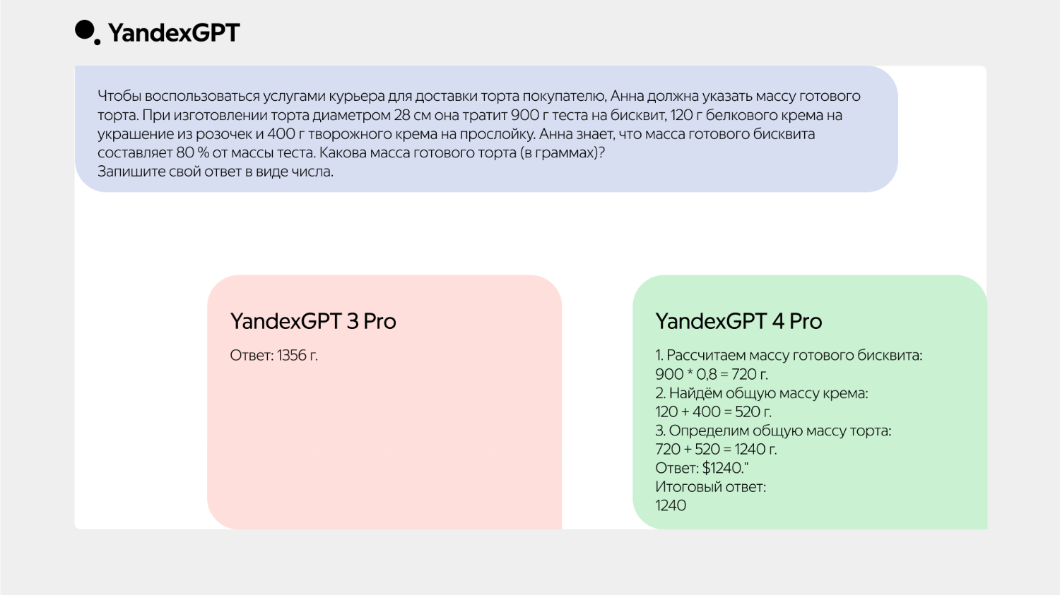 YandexGPT 4 Pro по качеству ответов превосходит модели третьего поколения в среднем на 70%, а в задачах с открытыми вопросами практически догоняет GPT-4o. Версия Lite демонстрирует результаты, сопоставимые с самыми мощными моделями прошлого поколения. Это стало возможным благодаря улучшенному процессу обучения, который научил нейросеть пошагово решать задачи, тем самым улучшив её способность рассуждать.