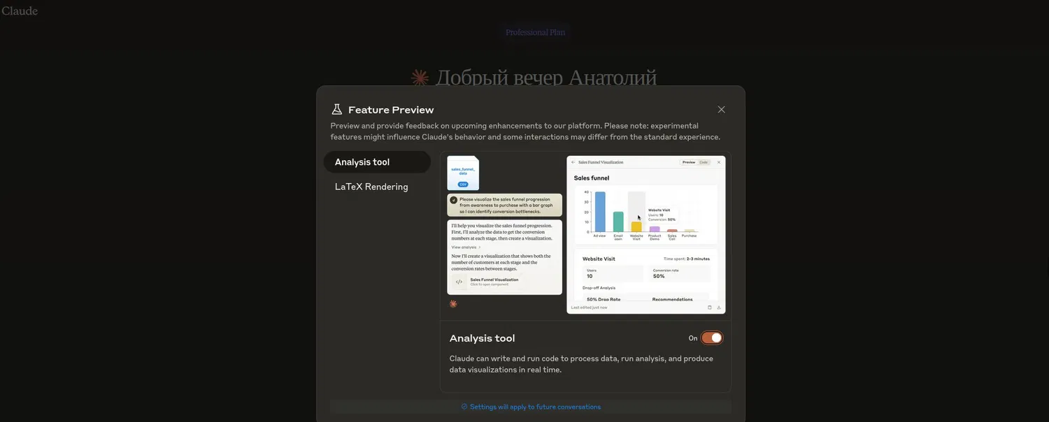 Для активации новой функции пользователям необходимо войти в систему Claude.ai и включить опцию Feature Preview в настройках профиля, доступных при нажатии на имя пользователя в левом нижнем углу интерфейса.