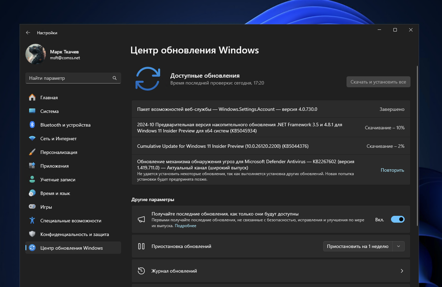 Примечание. Microsoft заблокировала установку обновлений для инсайдеров Windows 11 в России и Беларуси. Для установки обновления KB5044376 (Build 26120.2200) вы можете использовать наши DNS-серверы: Установка инсайдерских сборок Windows 11 с помощью Comss.one DNS.
