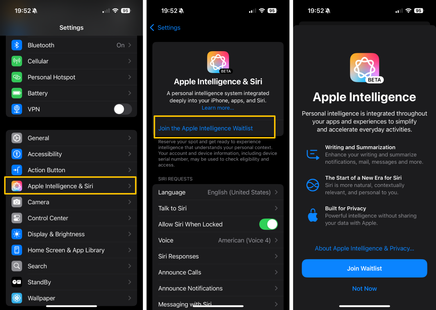 Функция Apple Intelligence доступна на iPhone 15 Pro, iPhone 15 Pro Max, всех моделях iPhone 16 и iPad с процессором M-серии или A17 Pro. Чтобы активировать Apple Intelligence, пользователи могут открыть приложение «Настройки», перейти в раздел «Apple Intelligence и Siri » и включить эту опцию.