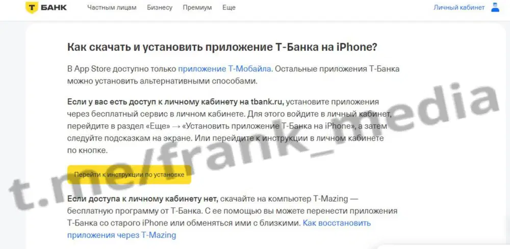 Кредитная организация «Т-Банк», находящаяся под санкциями, предложила новый способ установки своего мобильного приложения Т-Банк (Тинькофф) для iPhone через сторонний Apple ID. Данный метод позволяет клиентам скачивать приложение без необходимости личной встречи с сотрудником банка. Информация об этом способе была опубликована на сайте Frank Media.