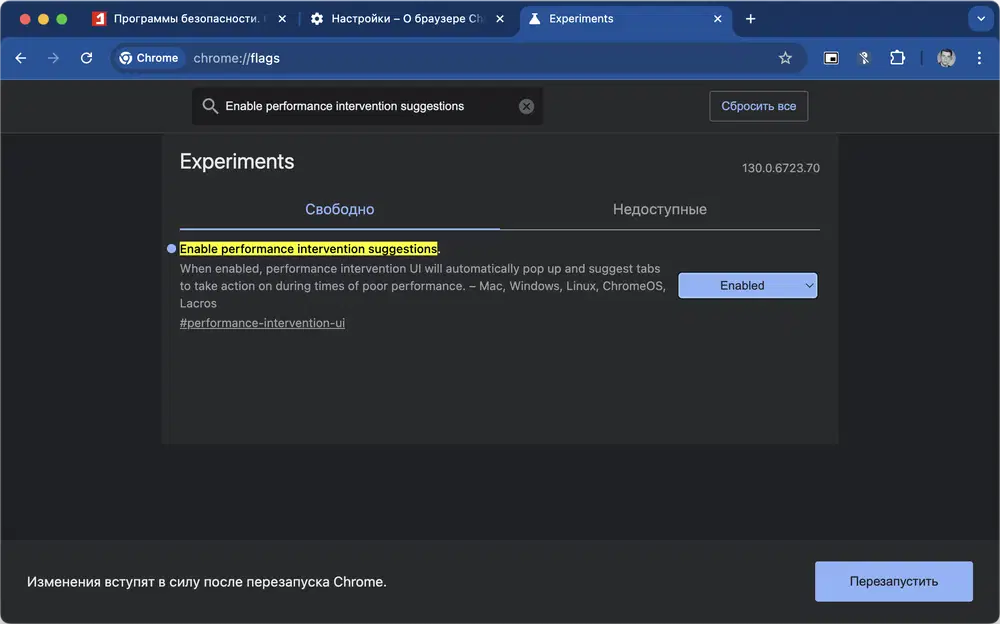 Если включено, интерфейс Performance Intervention автоматически предложит вам действия для вкладок, которые сильно загружают систему. – Mac, Windows, Linux, ChromeOS, Lacros.
