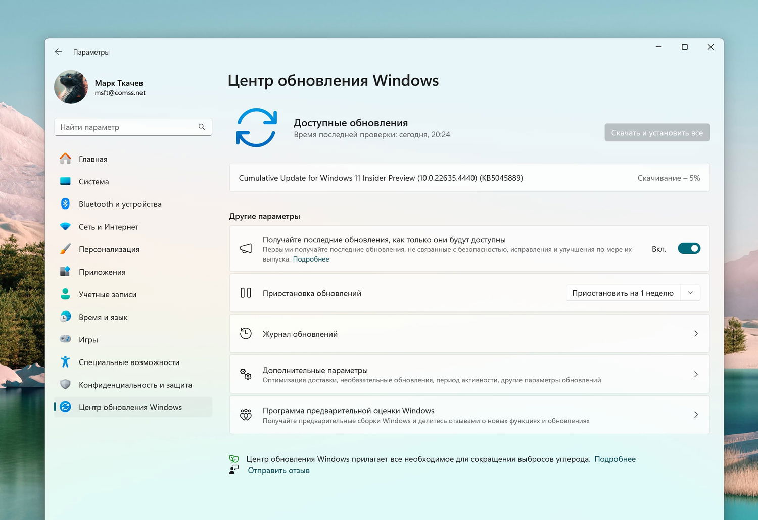 Участники программы, желающие первыми получить новые функции, могут включить переключатель «Получайте последние обновления, как только они будут доступны» в приложении «Параметры» > Центр обновления Windows», чтобы получать последние обновления по мере их доступности. Со временем функции будут распространяться на всех участников с включенным переключателем.
