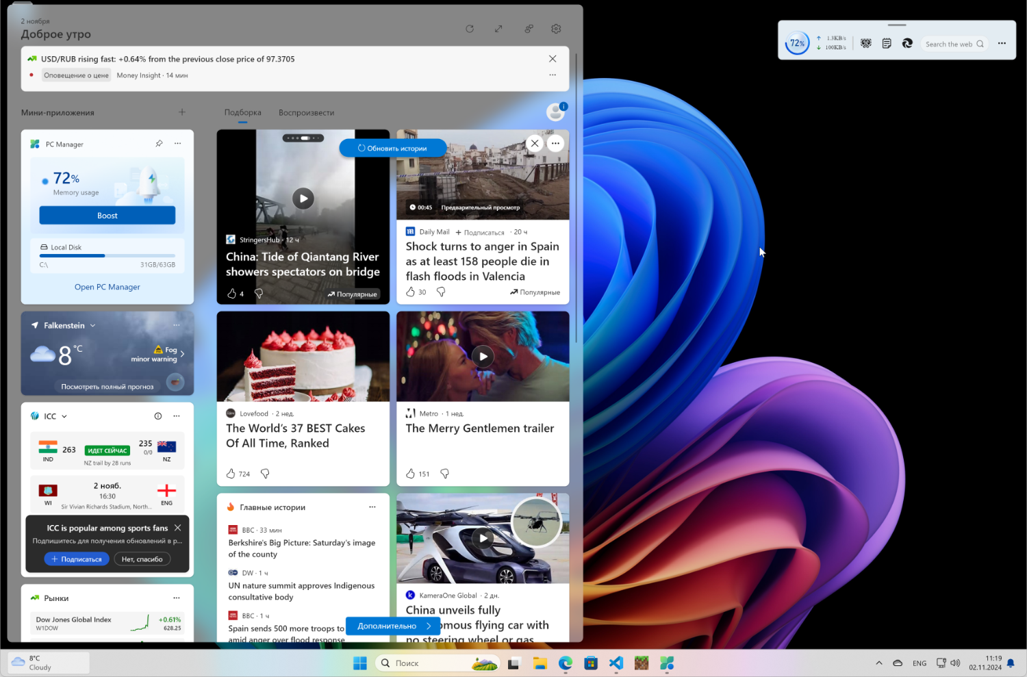 Ещё одно заметное улучшение – поддержка виджета для панели Windows 11. Теперь на панели виджетов можно установить виджет PC Manager, с помощью которого можно освободить оперативную память одним касанием.