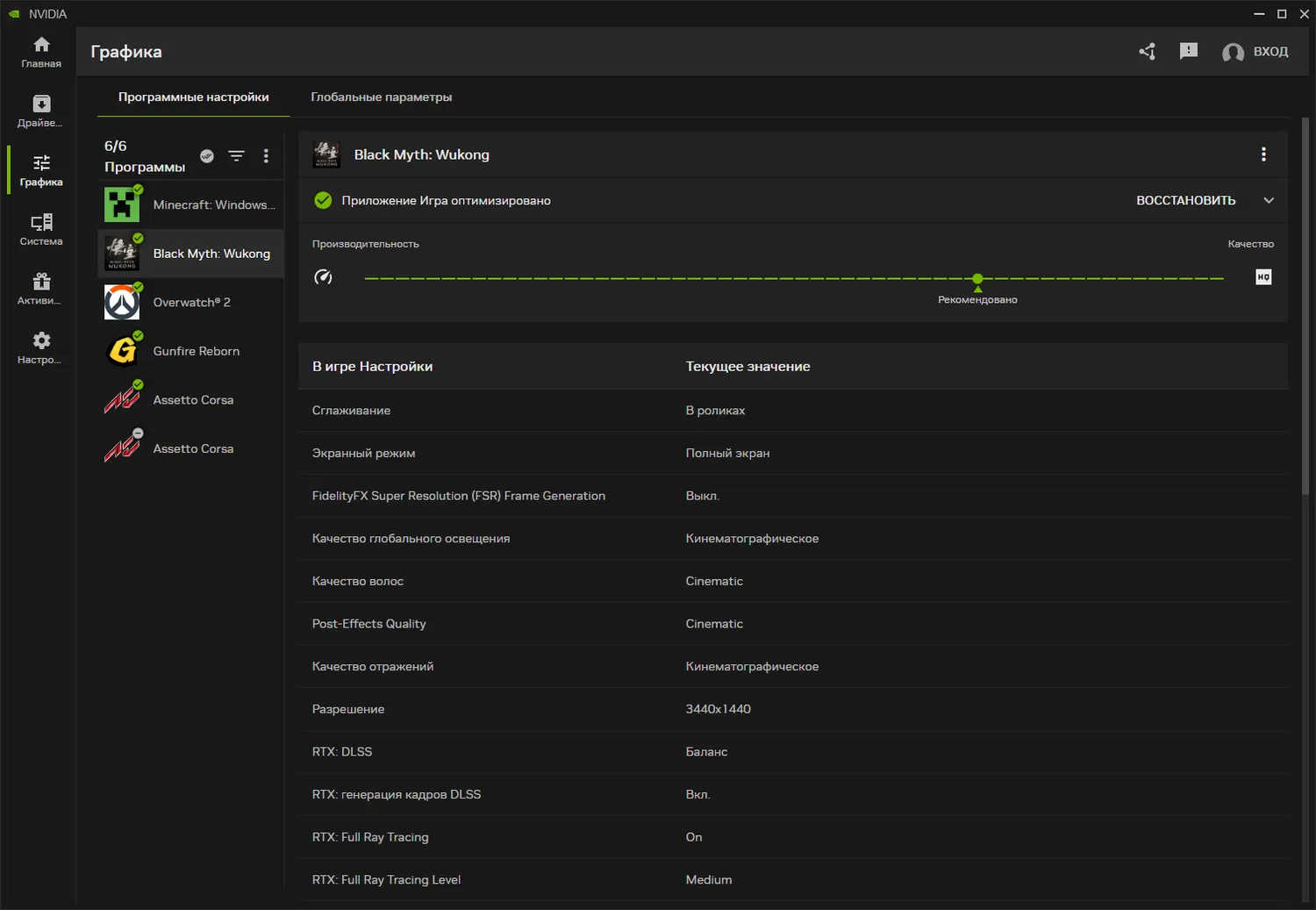 - Графика (Graphics): упрощенный интерфейс для настройки оптимальных параметров игр (Optimal Playable Settings) и управления глобальными настройками драйверов. Включает функции: