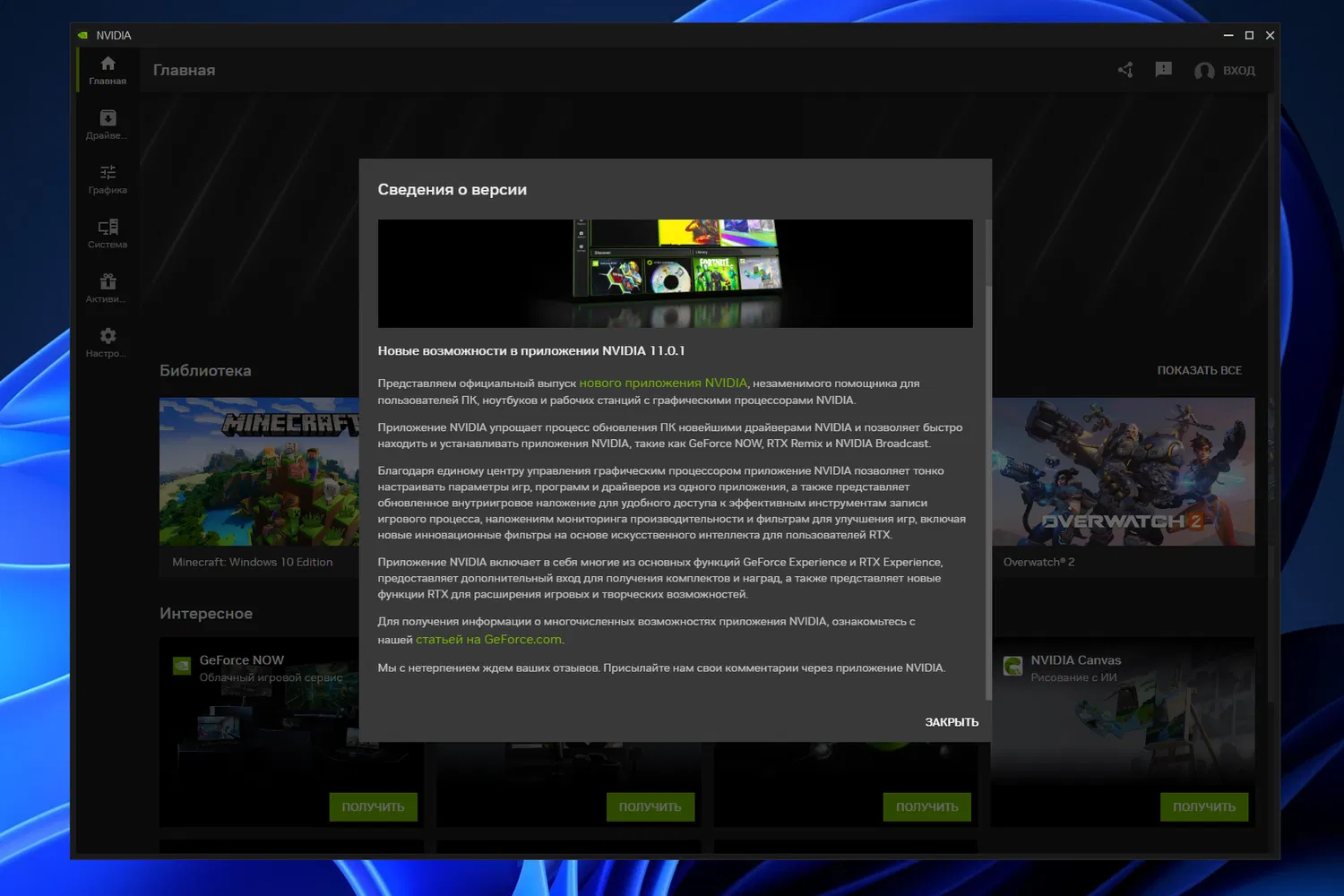 Обзор «Приложения NVIDIA»