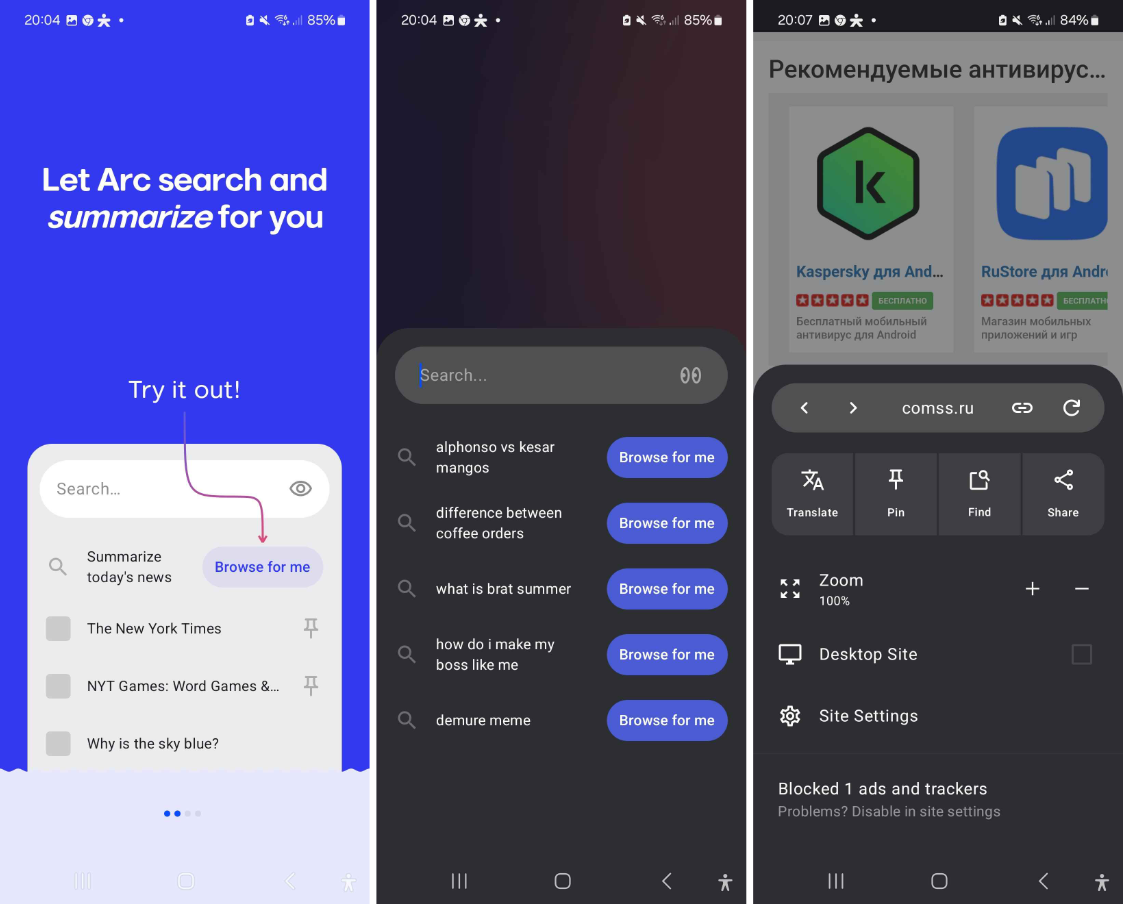 Arc Search не только блокирует рекламу, но и оснащен ИИ-функцией под названием «Browse for Me», которая может делать сводки на основе результатов поиска. В сентябре генеральный директор The Browser Company Джош Миллер (Josh Miller) описал Arc как поисковую систему, ориентированную на использование на ноутбуках, но компания явно стремится к расширению на мобильные устройства.
