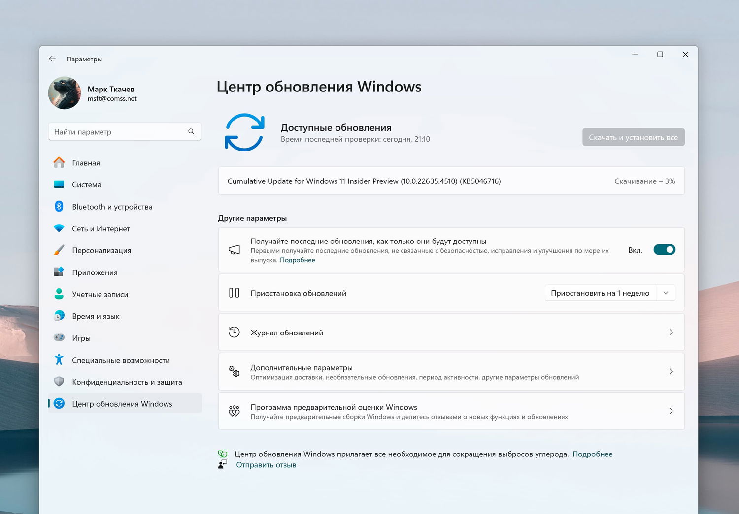 Примечание. Microsoft заблокировала установку обновлений для инсайдеров Windows 11 в России и Беларуси. Для установки Windows 11, Версия 23H2 (Сборка ОС 22635.4510) вы можете использовать наши DNS-серверы: Установка инсайдерских сборок Windows 11 с помощью Comss.one DNS.