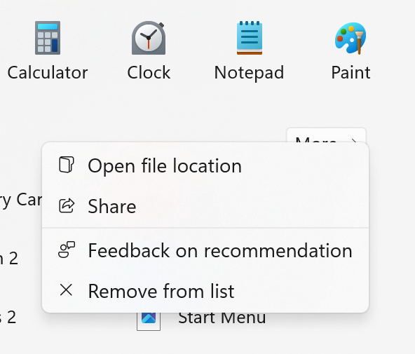 - Добавлена возможность щёлкнуть правой кнопкой мыши на локальных файлах в разделе «Рекомендуемое» в меню «Пуск» и поделиться ими.