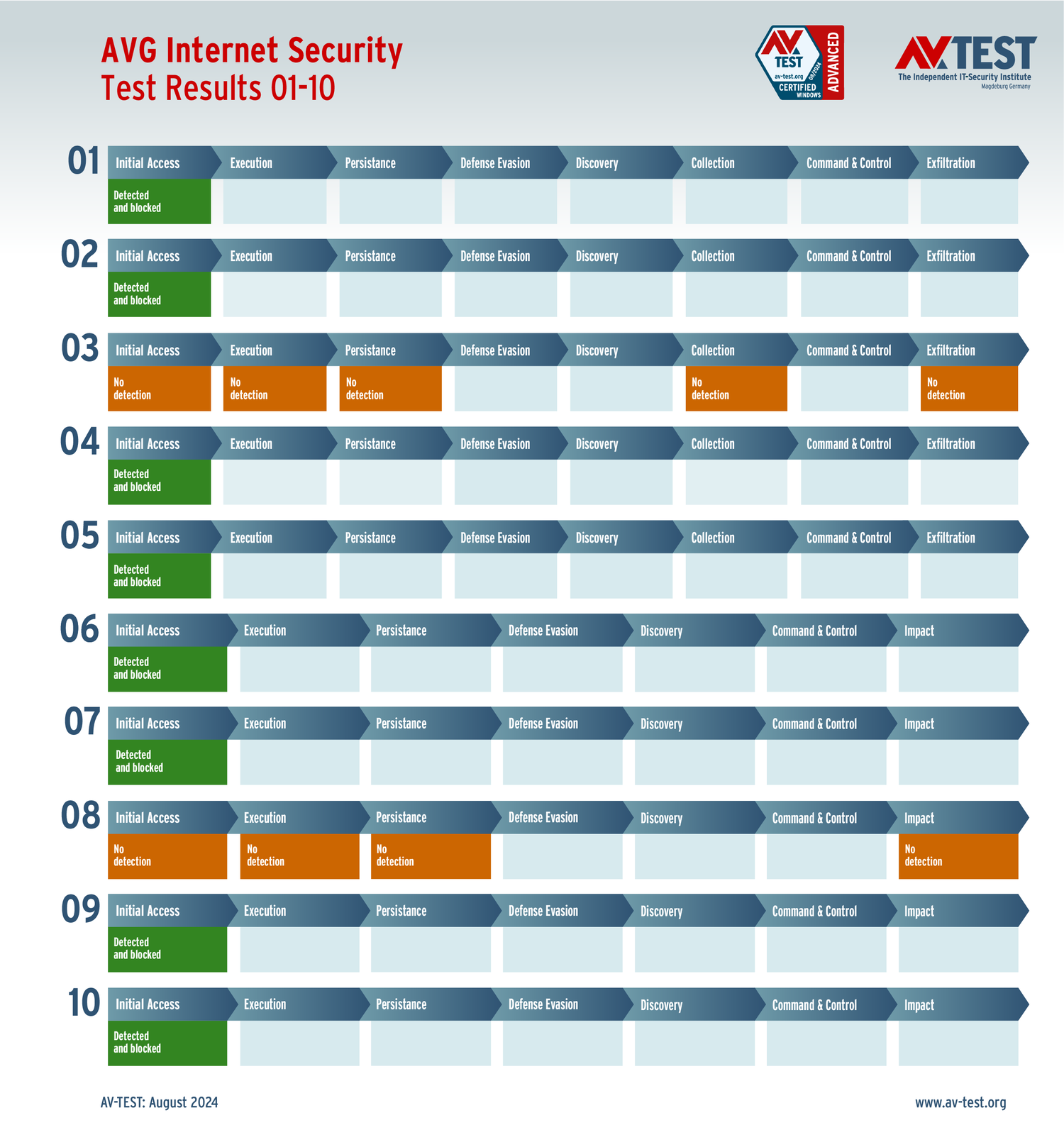 Антивирусы Avast Free AntiVirus и AVG Internet Security столкнулись с одинаковыми проблемами: каждый из них не обнаружил одну программу-вымогатель и одного похитителя данных. Это привело к шифрованию или краже данных. В результате оба продукта потеряли по 7 баллов — 3 балла за одну атаку и 4 за другую, оставив итоговый результат на уровне 28 из 35 баллов.