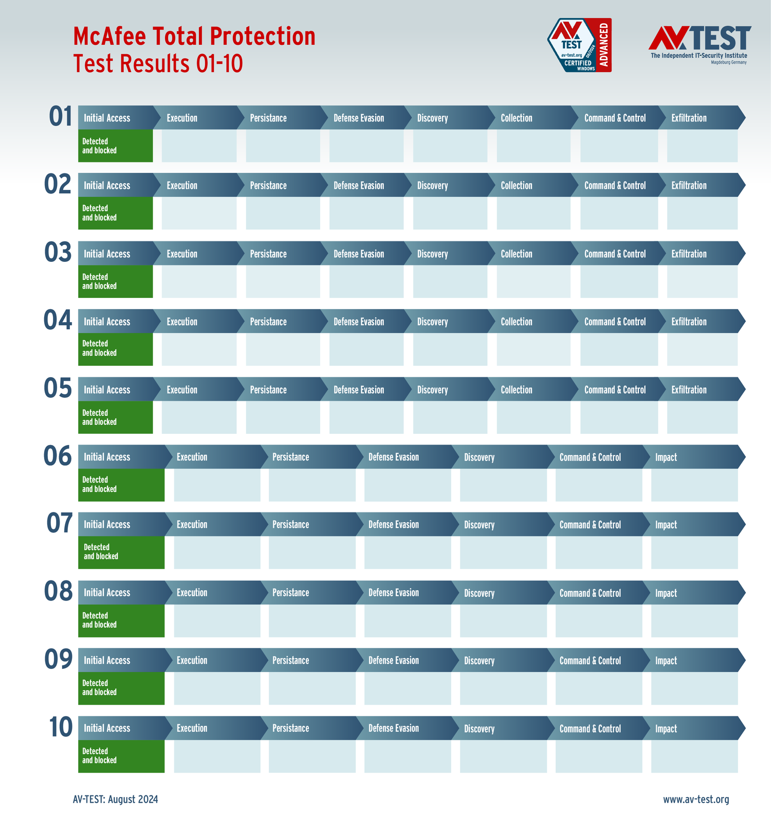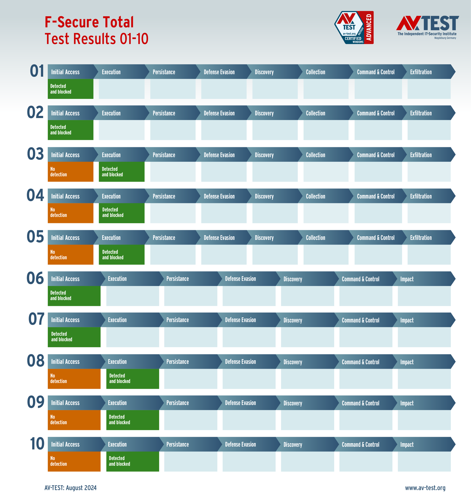 Среди антивирусов для домашних пользователей это решения от F-Secure, McAfee и Microsoft. Среди корпоративных решений безупречную защиту продемонстрировали продукты от Kaspersky, Microworld, Trellix и WithSecure.