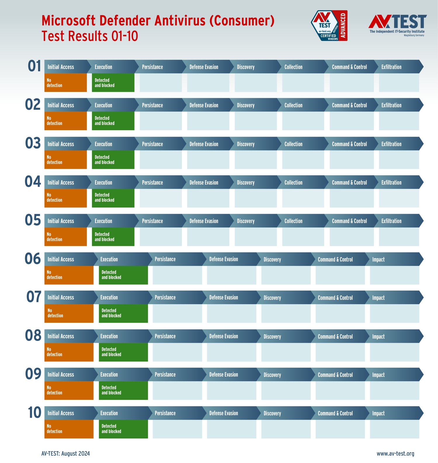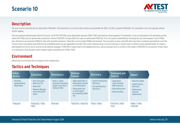 В тестах ATP использовались пять образцов программ-вымогателей и пять образцов инфостилеров, которые проводили атаки в десяти реалистичных сценариях. Злоумышленники применяли специальные техники как по отдельности, так и в комбинации.