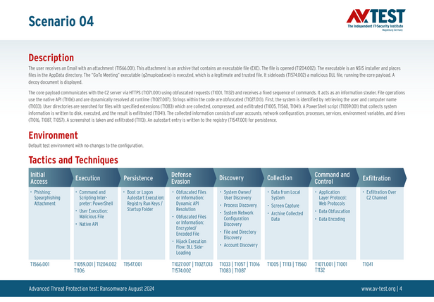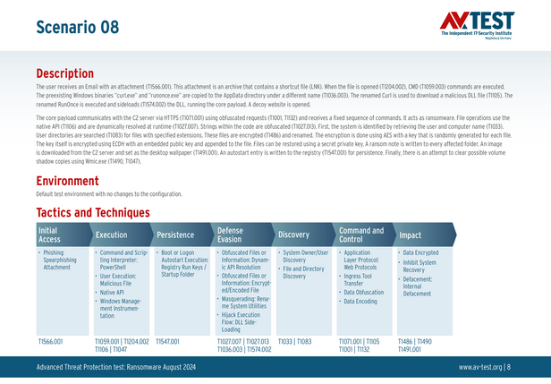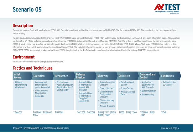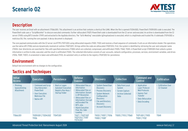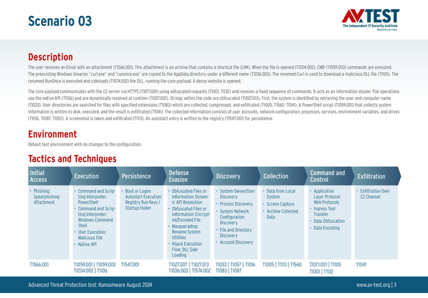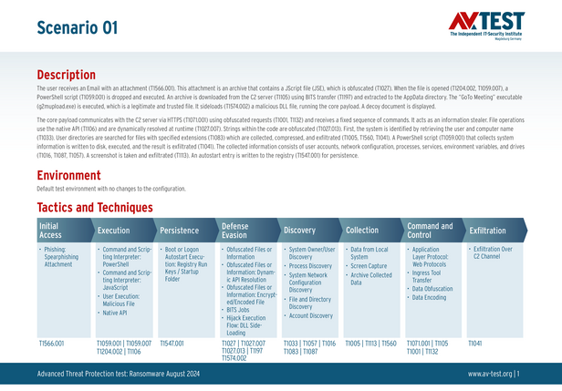 Киберпреступники постоянно разрабатывают новые методы, чтобы внедрять свои зловреды в системы пользователей. Лаборатория AV-Test изучает эти методы и имитирует атаки по тем же шаблонам, которые ежедневно встречаются в IT-среде. Техники используются как по отдельности, так и в комбинации.
