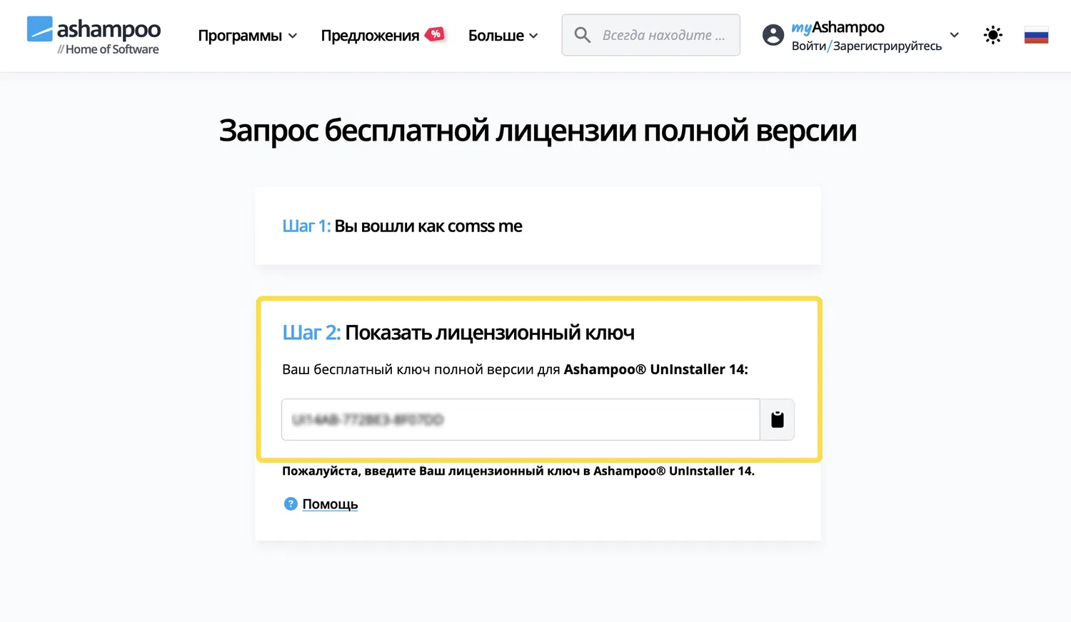 2. Зарегистрируйте новый аккаунт Ashampoo (или используйте существующий), чтобы получить лицензионный ключ
